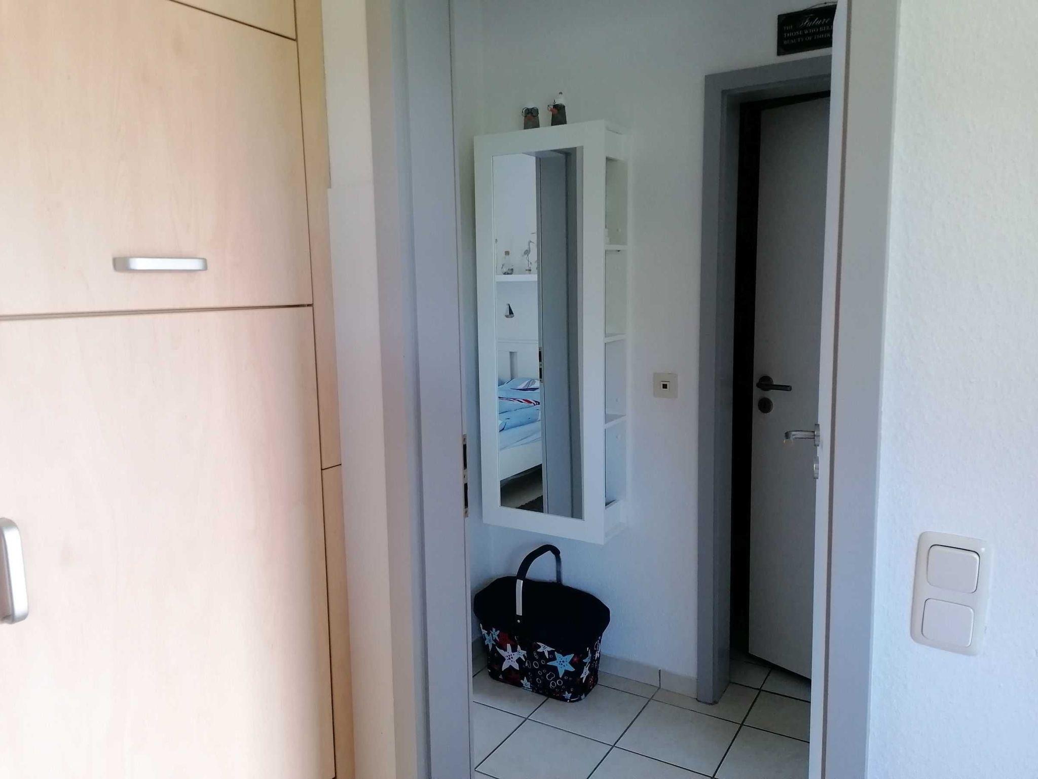 • ein Schlafzimmer mit Doppelbett (1,8 m x2,0 m) sowie Kinderreisebett auf Anfrage, Duschbad, Flur, Windfang und kleiner Abstellraum
