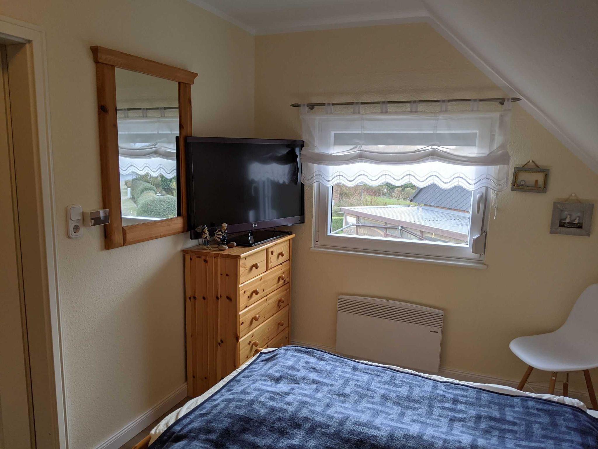 Ein Schlafzimmer ist mit Doppelbett (180 x 200cm). Kinderbett (60 x120 cm), Kleiderschrank und einer Kommode ausgestattet. Hier sind ein weiterer Fernseher mit SAT-HD und ein Radiowecker vorhanden. Das zweite Schlafzimmer ist mit zwei Einzelbetten (90 x 200cm) sowie zwei Kleiderschränken eingerichtet.