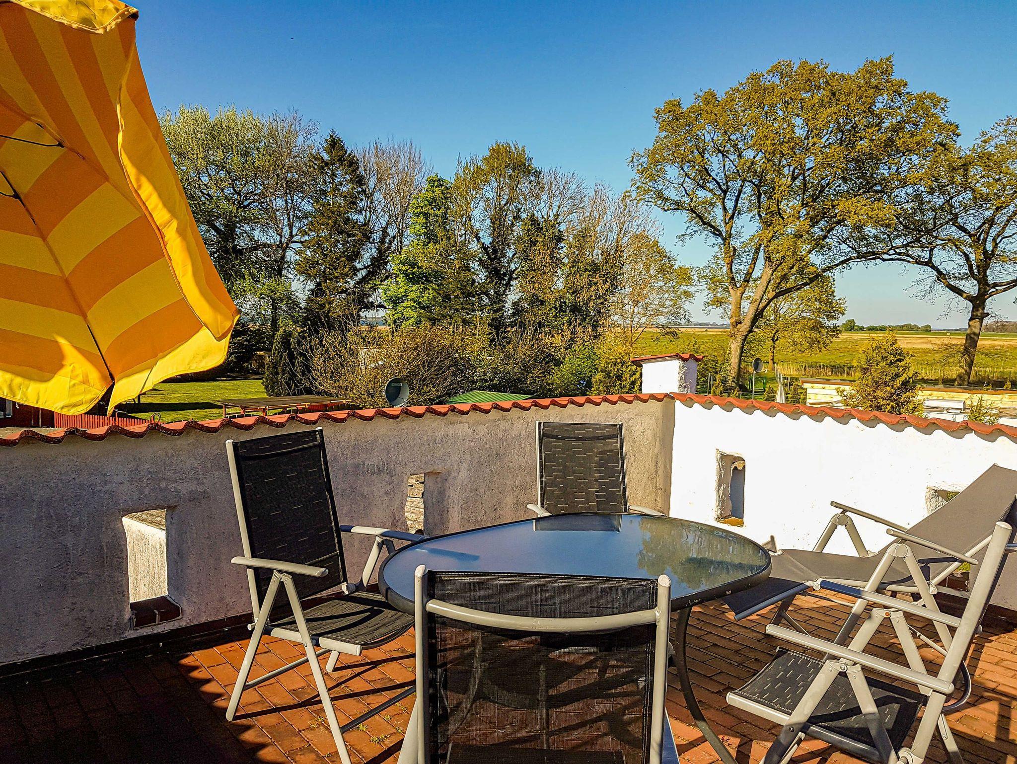 Gemütliche Ferienwohnung in Fuhlendorf mit Garten, Spielschiff und drei Terrassen für erholsame Familienferien.