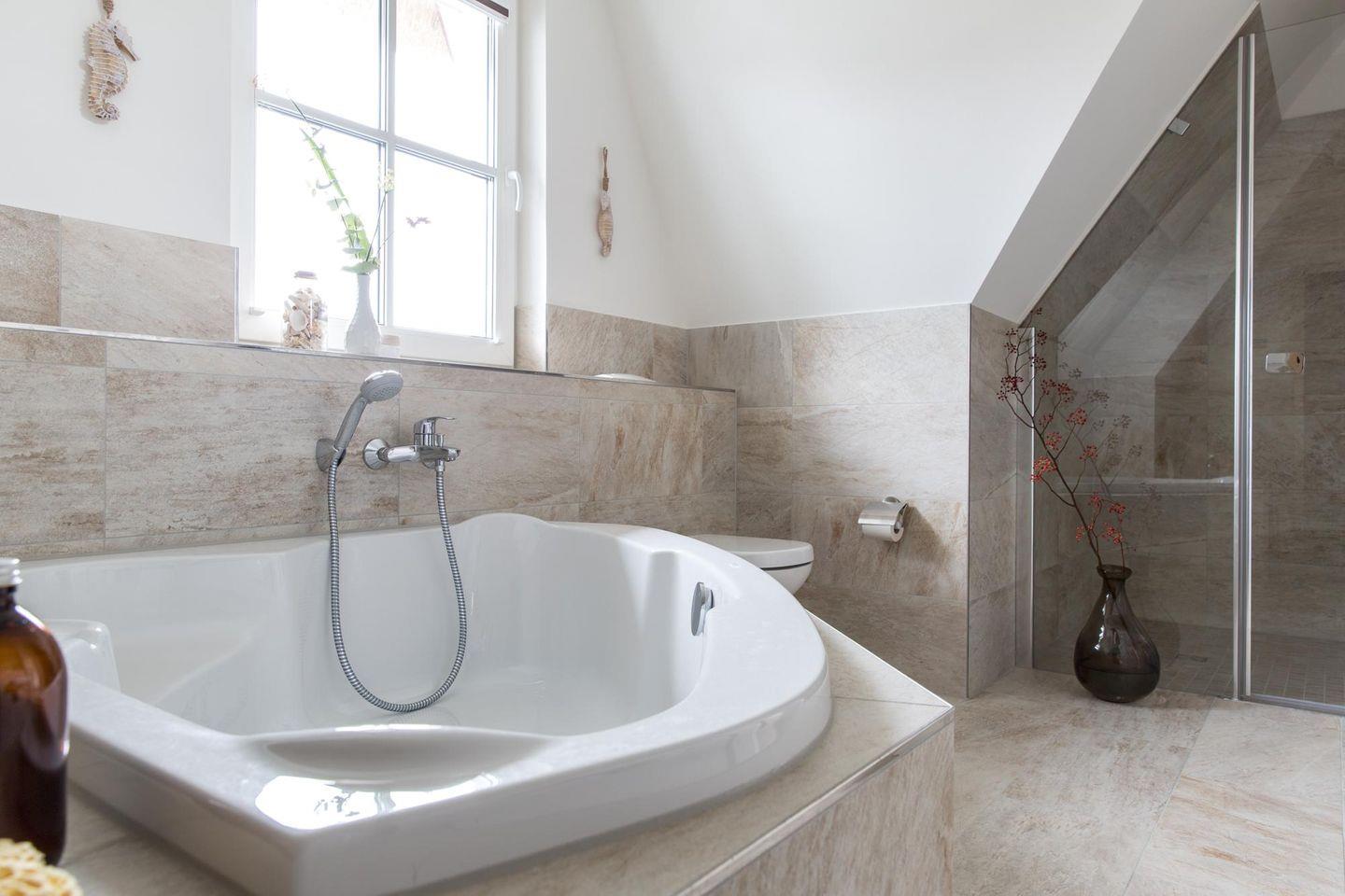 Dieses modern ausgestattete Ferienhaus mit traditionellem Reetdach, ortstypischer Feldsteineinfriedung und 754 m2 großem eingezäuntem Grundstück liegt in einer neuen entstehenden Ferienhausanlage. Es bietet viel Platz für vier Feriengäste (zwei Schlafzimmer mit Doppelbett und TV) und verfügt über einen großzügigen Wohn-Essbereich, ein einladendes Wannen-/Duschbad mit WC und Sauna im OG sowie ein Gäste-WC im EG.
