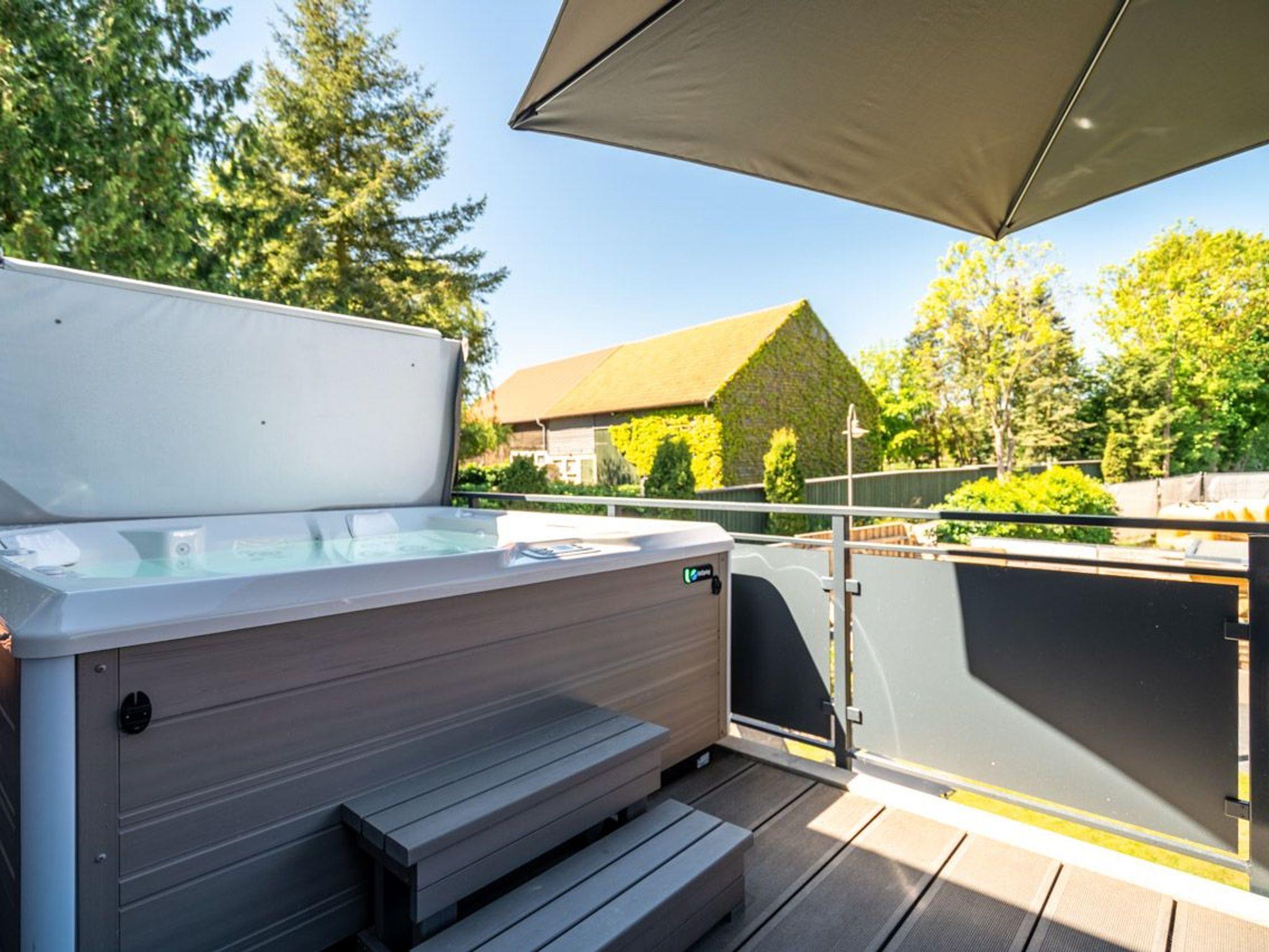 Der Balkon ist mit einem Außen-Whirlpool ausgestattet und lädt dazu ein, sich unter freiem Himmel zu entspannen oder gemeinsam gemütliche Grillabende zu verbringen.