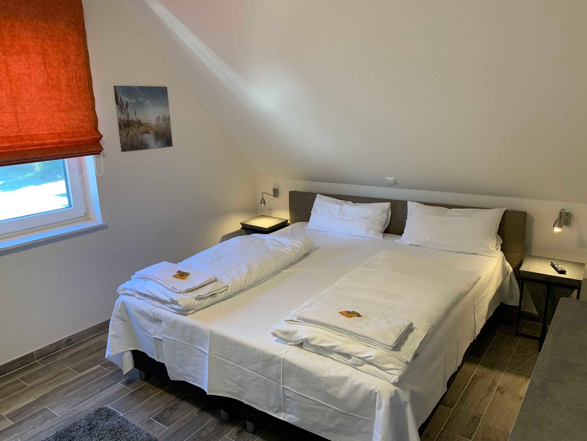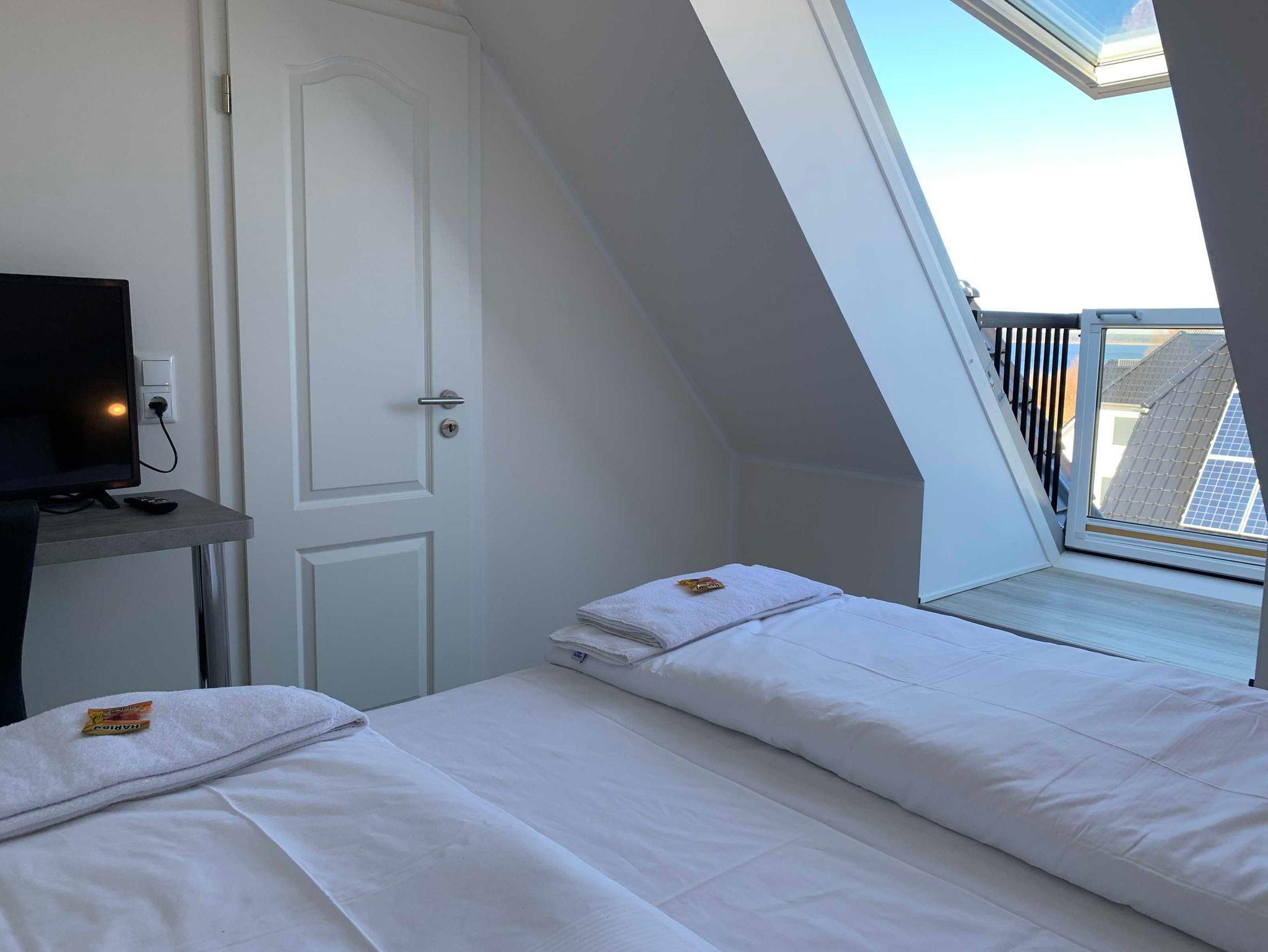 Die 4 Schlafzimmer verfügen ebenfalls alle über Flat-TV und sind jeweils mit 180 x 200 cm großen Boxspringbetten ausgestattet.