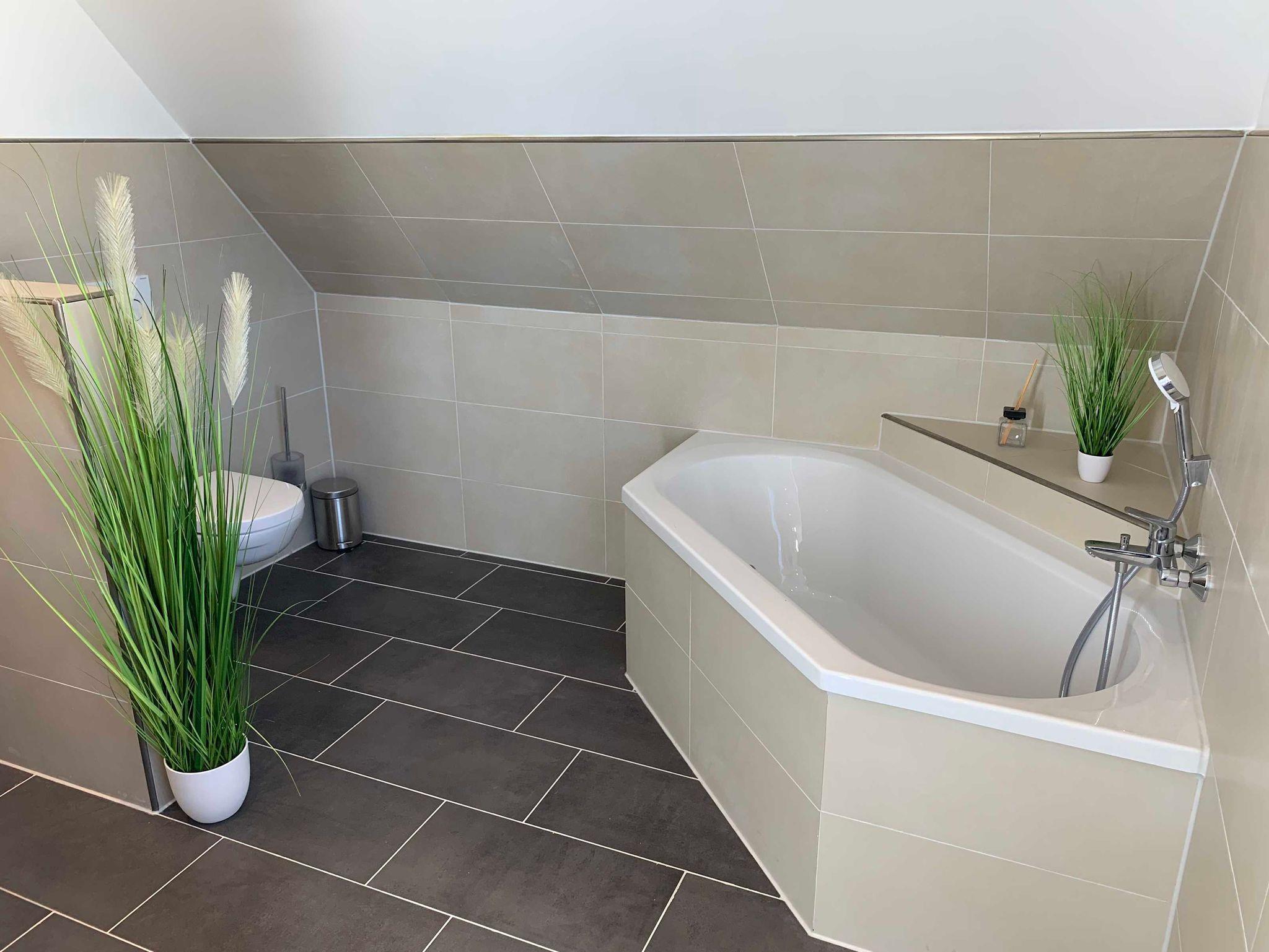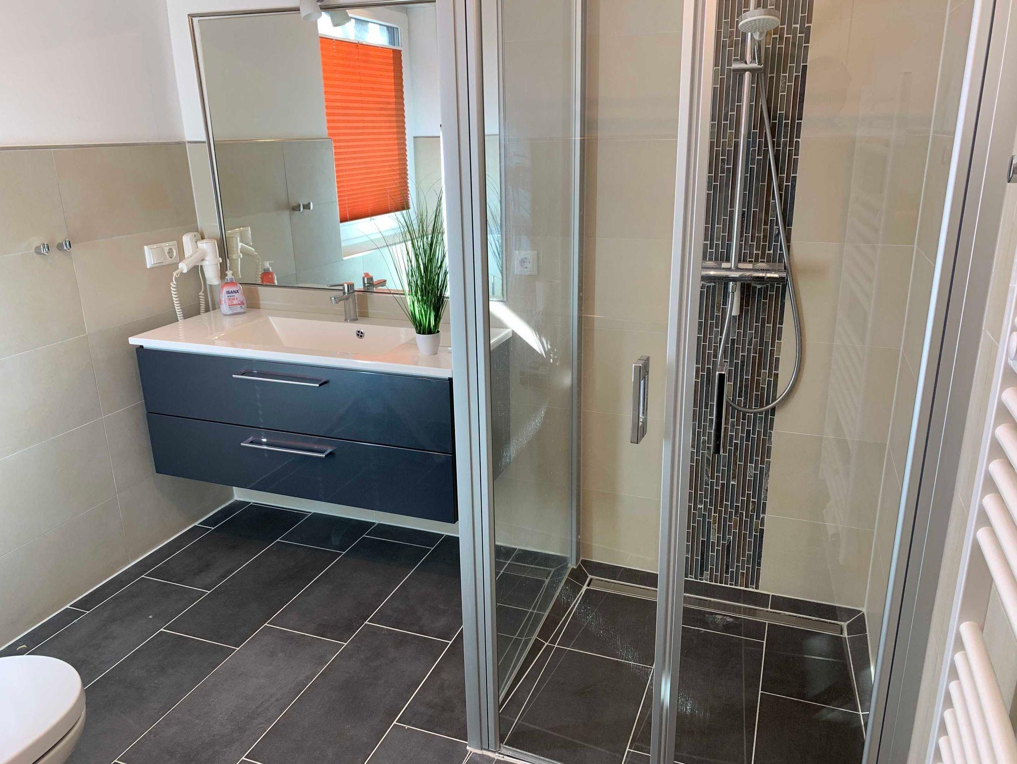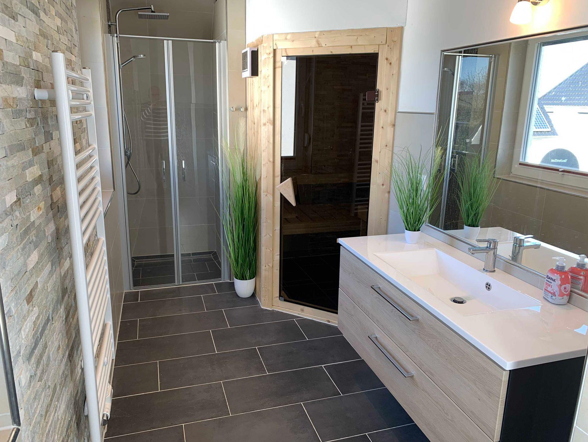 Die Bäder bieten moderne Waschtische und Raindanceduschen. Das große Bad verfügt zusätzlich über eine Badewanne und eine Sauna. Alle Räume werden über eine Fussbodenheizung beheizt..