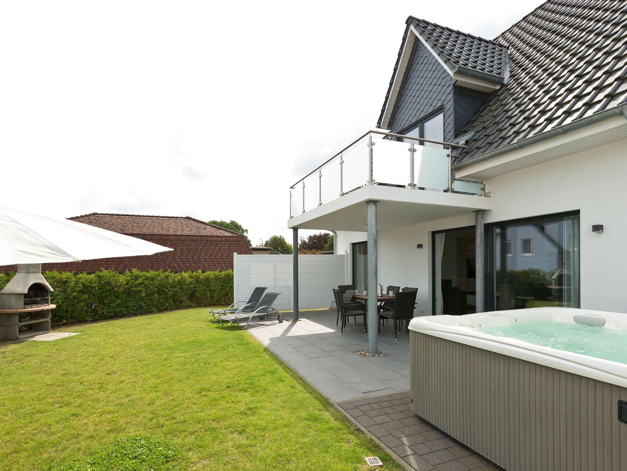 Unser Ferienhaus lädt zum Wohlfühlen für die ganze Familie ein. Vom kombinierten Wohn-Essbereich mit hochmoderner Einbauküche betreten Sie die große möblierte Sonnenterrasse mit Whirlpool. In Ihrem Garten warten eine Sonnenliegen und ein Sonnenschirm auf Sie.