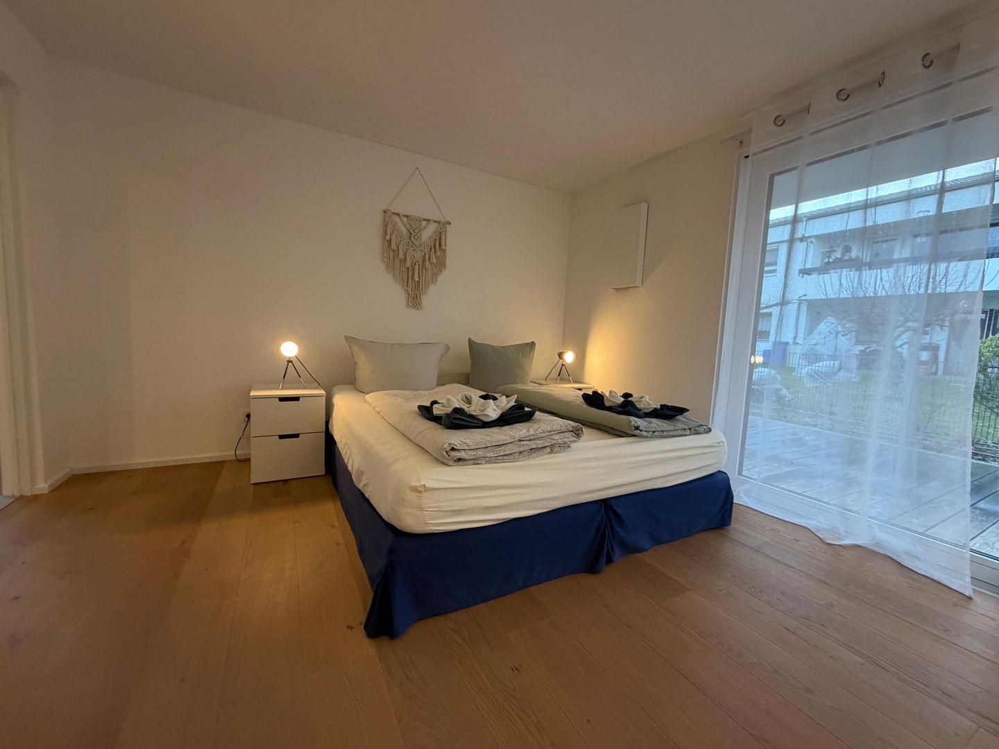 In den drei Schlafzimmern finden insgesamt 6 Personen Platz. Zwei weitere Schlafmöglichkeiten stehen im Wohnbereich auf einer hochwertigen Schlafcouch zur Verfügung, sodass die Wohnung flexibel auch für größere Familien oder Gruppen geeignet ist.