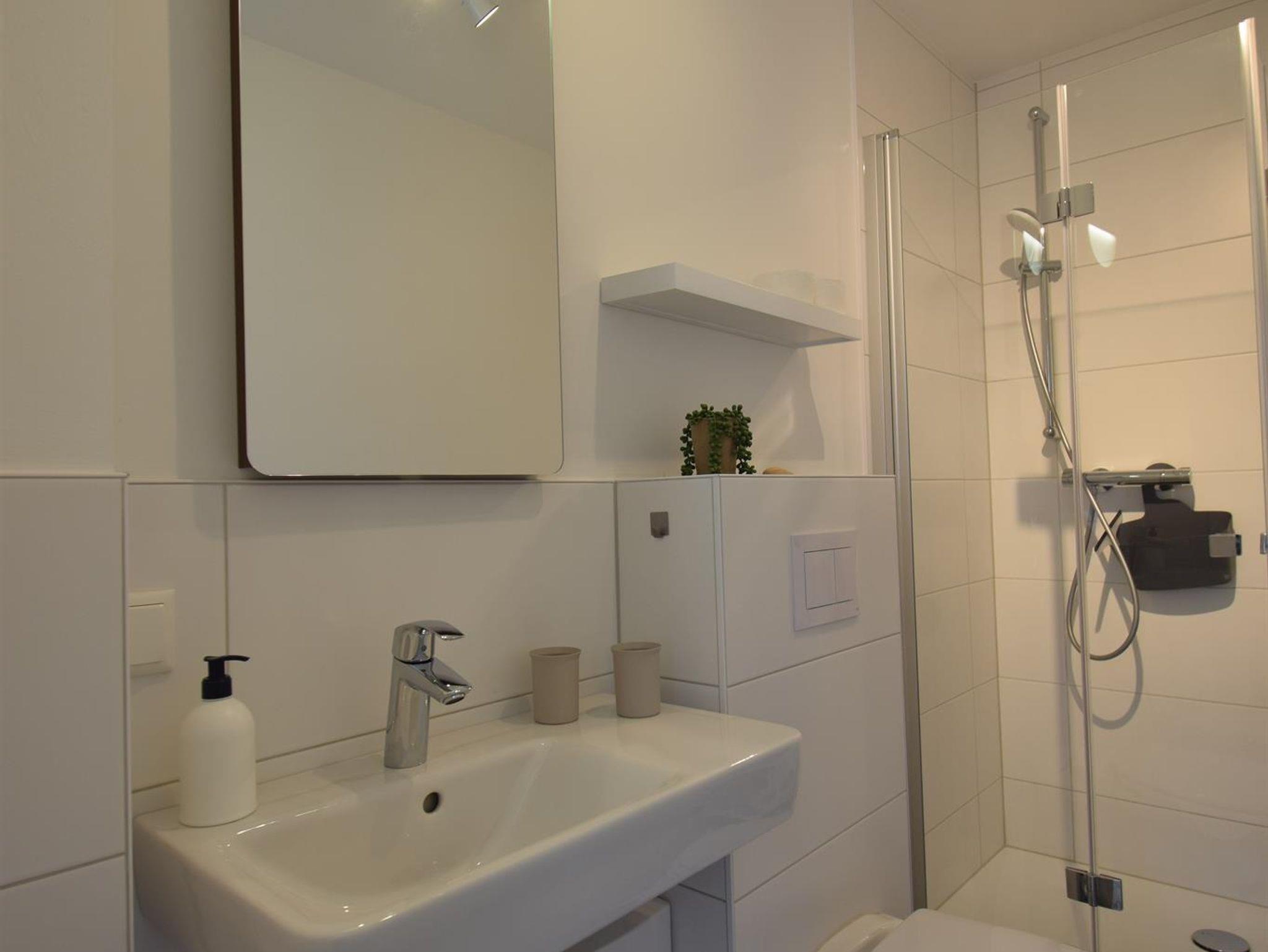 Das Badezimmer ist mit Dusche und WC gut ausgestattet.