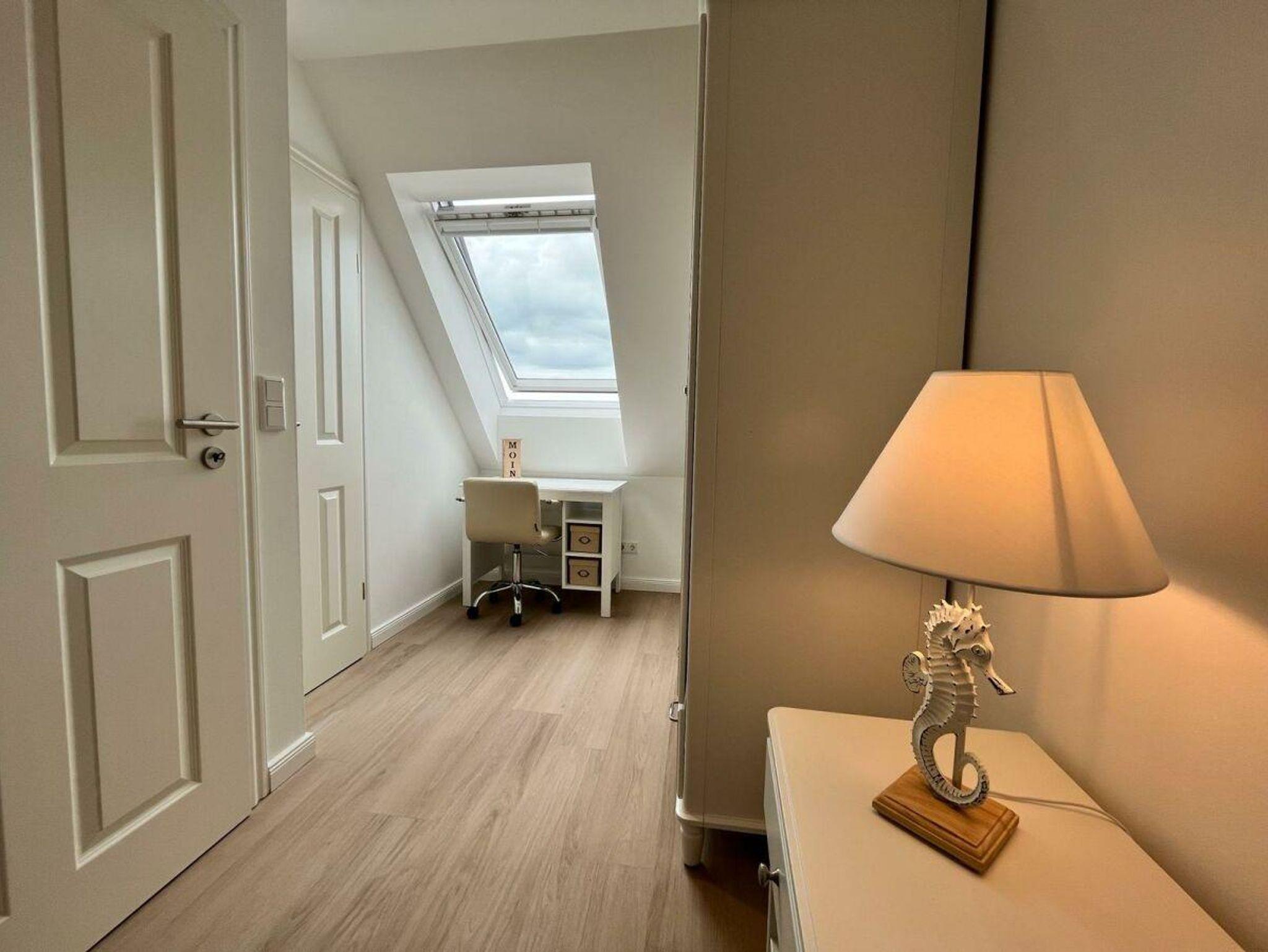 Traumhaftes Neubau - Friesenhaus, geschmackvoll und sonnig eingerichtet in weiß und beige Tönen. Hiermit können wir Ihnen das auf den Bildern mittlere Friesenhaus anbieten. Auf den Grundrissen ist es mit WE 3 bezeichnet. Die Terrasse ist nach Süden. ausgerichtet- . Moderne Gartenmöbel und ein Weber Grill stehen dort zur Verfügung .