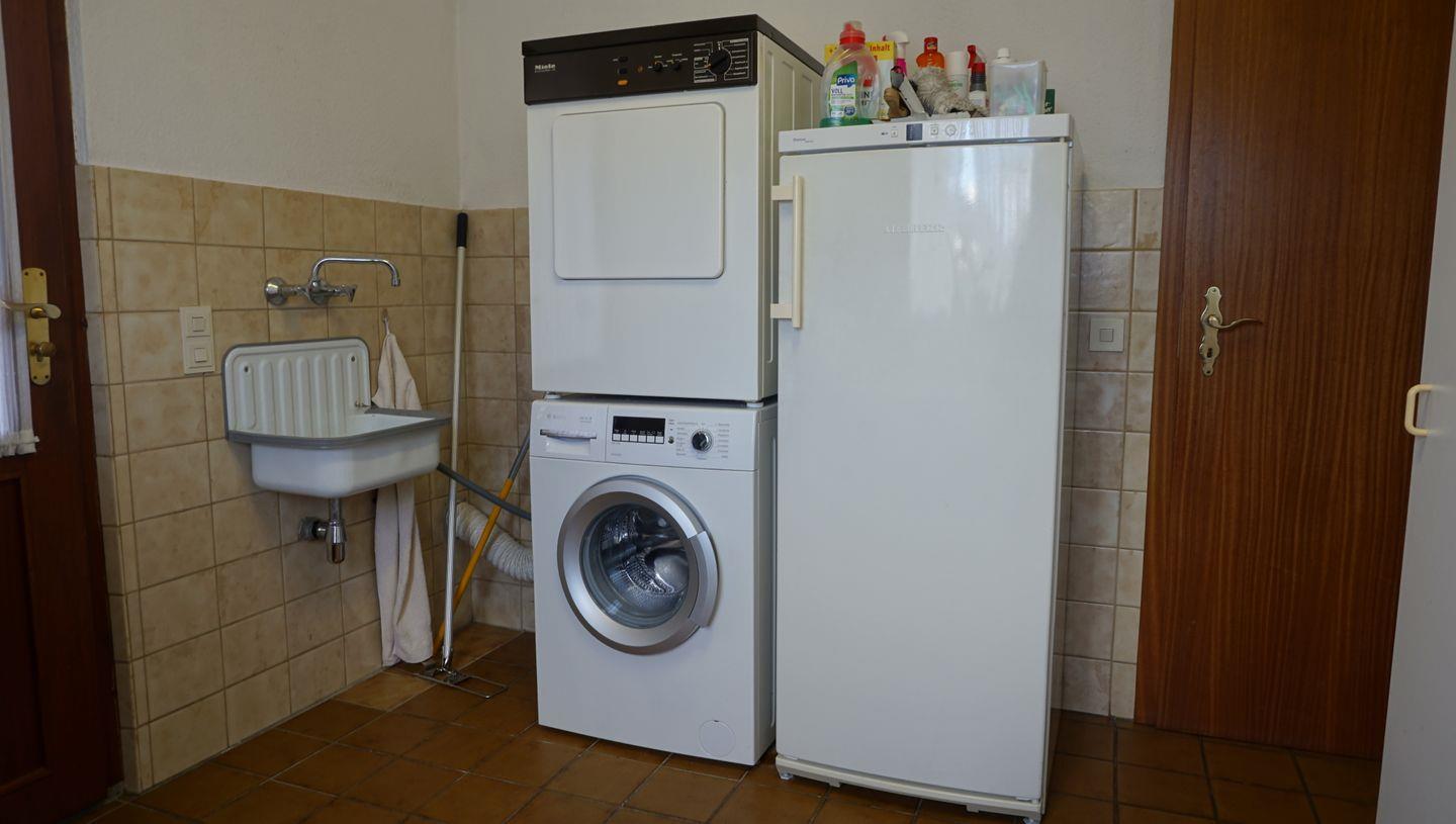 Auch ein Waschraum mit Waschmaschine und Seiteneingang ist vorhanden.