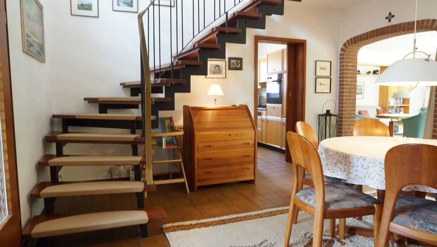 Auf 120 m² Wohnfläche, verteilt auf zwei Etagen, erwartet Sie ein großer, lichtdurchfluteter Wohn- und Essbereich mit TV und kostenlosem W-Lan.