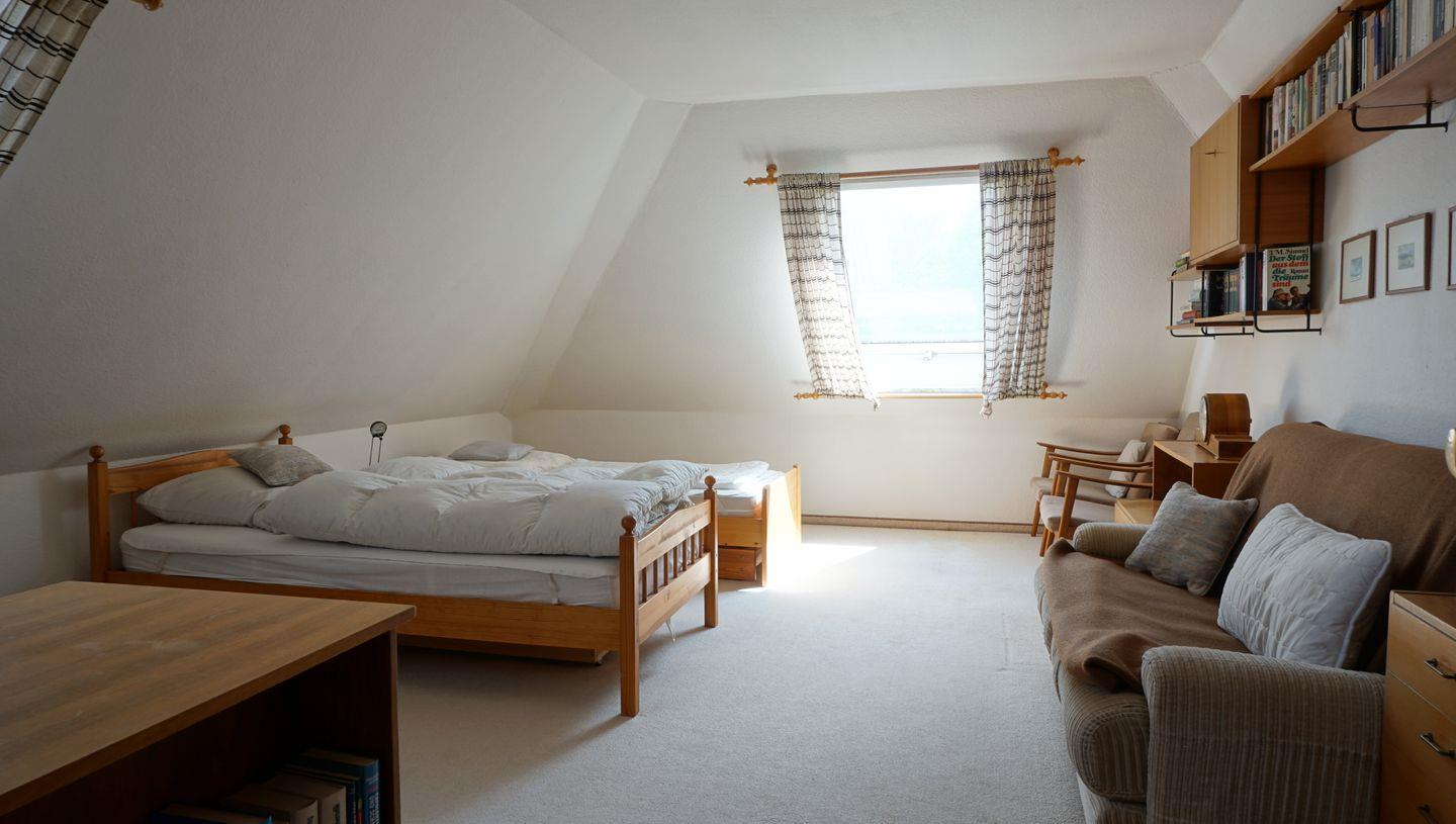 Das Haus verfügt über zwei Schlafzimmer mit Doppelbetten und ein Schlafzimmer mit zwei Einzelbetten sowie einem Schreibtisch. Ein modernes Duschbad und ein Vollbad bieten Komfort für alle Gäste sowie nochmal ein Gäste WC.