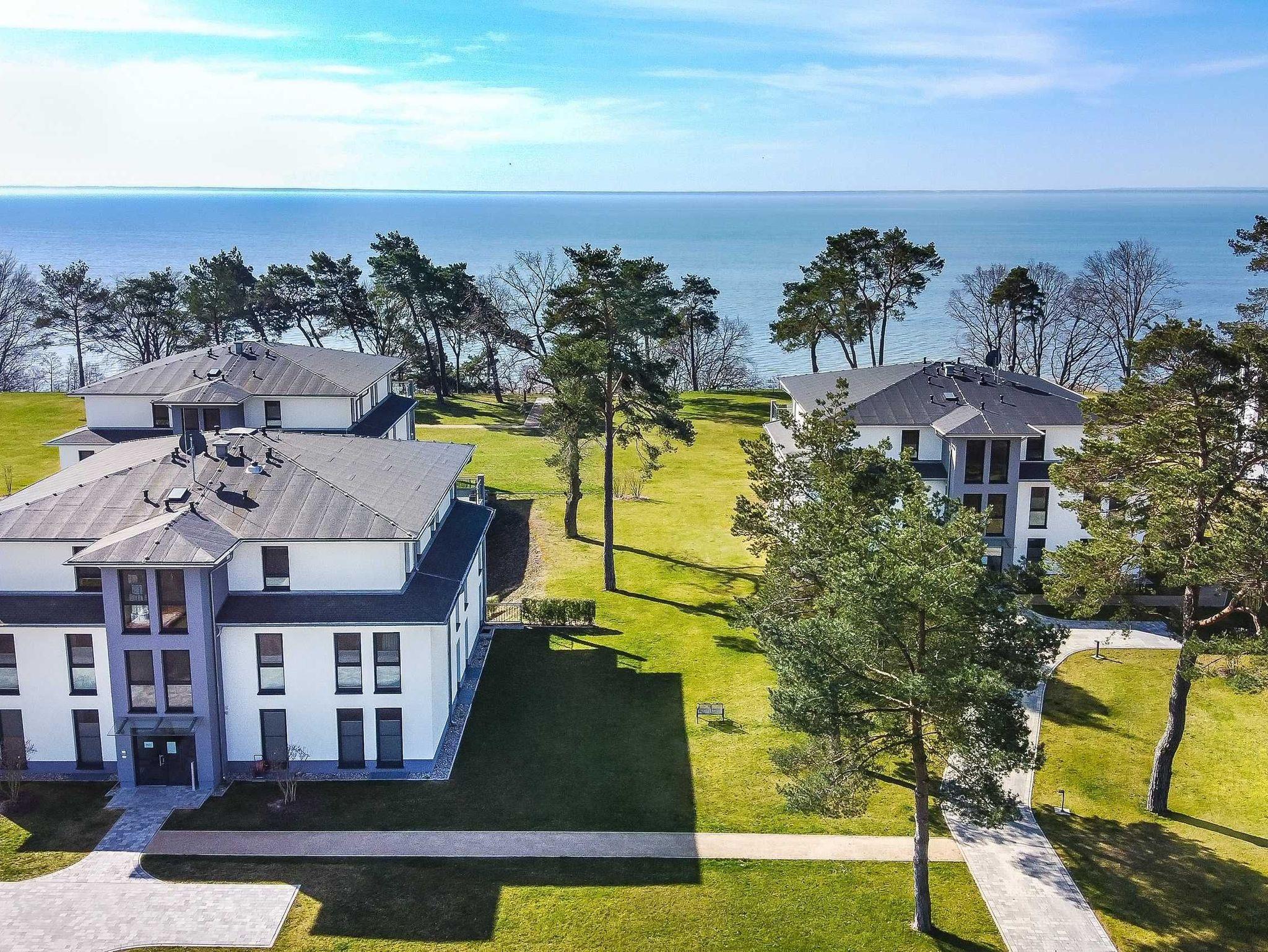 Alle Terrassenwohnungen und Appartements sind in hochwertiger Ausstattung eingerichtet. Von großen Rasenflächen und ebenen Gehwegen umgeben, stehen unsere sieben Ferienhäuser auf die Haffküste ausgerichtet auf einer weitflächigen Außenanlage zueinander. Unsere Haffterrassen laden mit Sitzgelegenheiten an der Steilküste zum Entspannen ein.