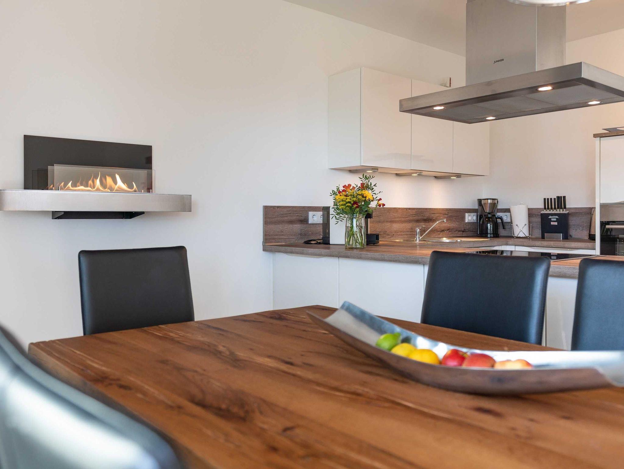 Diese lichtdurchflutete, helle 4-Zimmer-Wohnung im obersten Geschoss von Haus 2 (Aufzug vorhanden) mit Platz für maximal 6 Personen verfügt über eine Wohnfläche von 94 m² und hat 3 Schlafzimmer sowie 2 voll ausgestattete Duschbäder. Die große Sonnenterrasse mit 17 m² liegt in idealer Süd-Ausrichtung. Die Wohnung ist modern eingerichtet mit offenem Wohn-Essbereich, großem Esstisch, Ledersofa sowie Flat-TV (inkl. Sky-Abo). Die hochwertig ausgestattete Küche, offen zum Wohnbereich, lässt keine Wünsche offen. Erholsamer Schlaf in den beiden Schlafzimmern mit Boxspringbetten und Flat-TV ist garantiert. Im dritten Schlafzimmer befindet sich ein bequemes Schlafsofa (Liegefläche: 1,60 x 2,00 m), Schreibtisch und ein Flat-TV. Auf dem großen, überdachten Sonnenbalkon mit Essgruppe und zwei Relax-Sesseln, Fußhockern sowie einem Sonnenschirm können Sie die Seele baumeln lassen.
