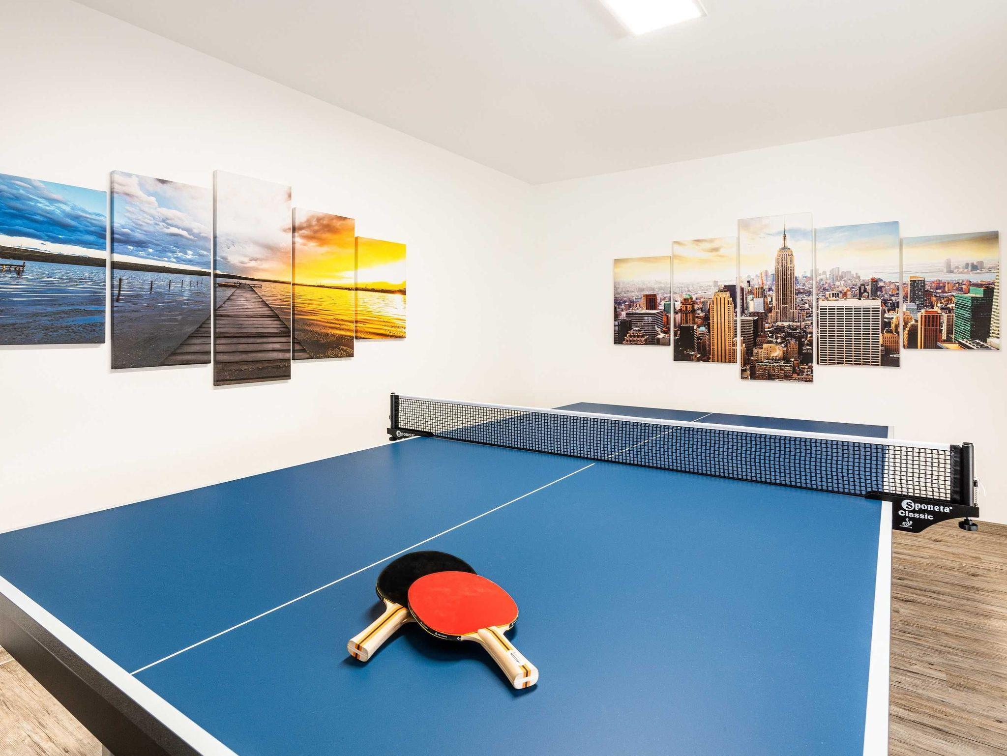 Sie können sich an unserer Boule-Bahn oder im Gemeinschaftsraum für Fitness und Tischtennis zusammenfinden.