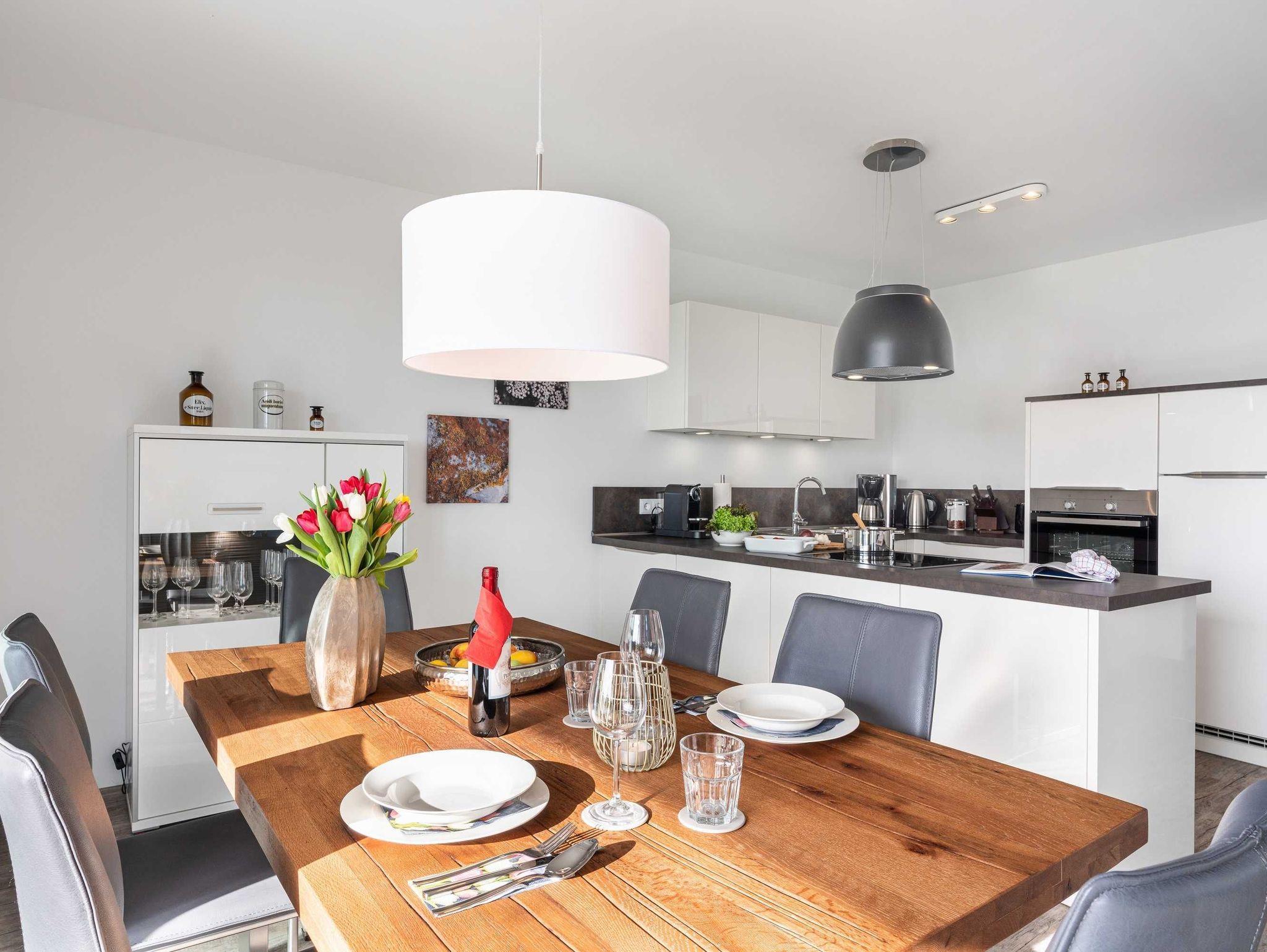 Alle Terrassenwohnungen und Appartements sind anspruchsvoll und modern ausgestattet. Großzügige Rasenflächen mit angelegten Gehwegen umgeben unsere Ferienhäuser. Einzelne Terrassen laden mit Sitzgelegenheiten an der Steilküste zum Verweilen ein.