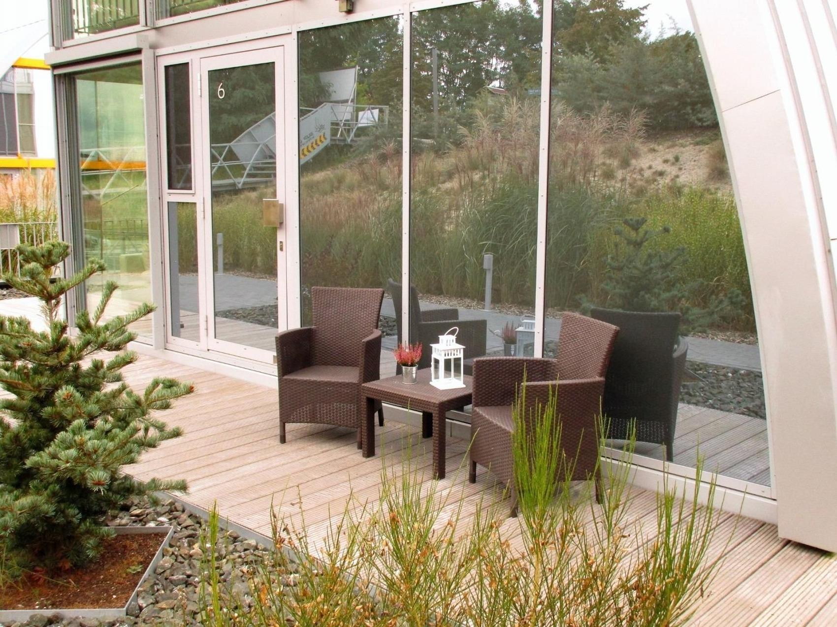 Genießen Sie in unseren komfortablen, geschmackvoll eingerichteten und lichtdurchfluteten Appartements Düne Ihren Aufenthalt im Lausitz Resort. Diese Appartements befinden sich im 1. Obergeschoss des Strandhauses und bieten auf ca. 35 m² Platz für 2 Personen. Ausstattungsmerkmale:Wohn-/Schlafbereich voll klimatisiertDoppelbett im abgegrenzten WohnbereichWohnsofaTV Flachbildschirm mit Radiooffene, voll ausgestattete Küche (Geschirrspüler mit Startpaket, Kühlschrank, 2 Ceran - Kochfelder, Bistroofen, Kaffeemaschine, Wasserkocher), diverse KüchenutensilienBadezimmer mit Dusche/WC, Schminkspiegel und Föhnausgestattet mit Bettwäsche und Handtücher Sonnenterrasse mit Sonnenliegen und EssbereichWLAN inklusiveein kostenfreier PKW-StellplatzHundemitnahme nur unter Voranmeldung möglich