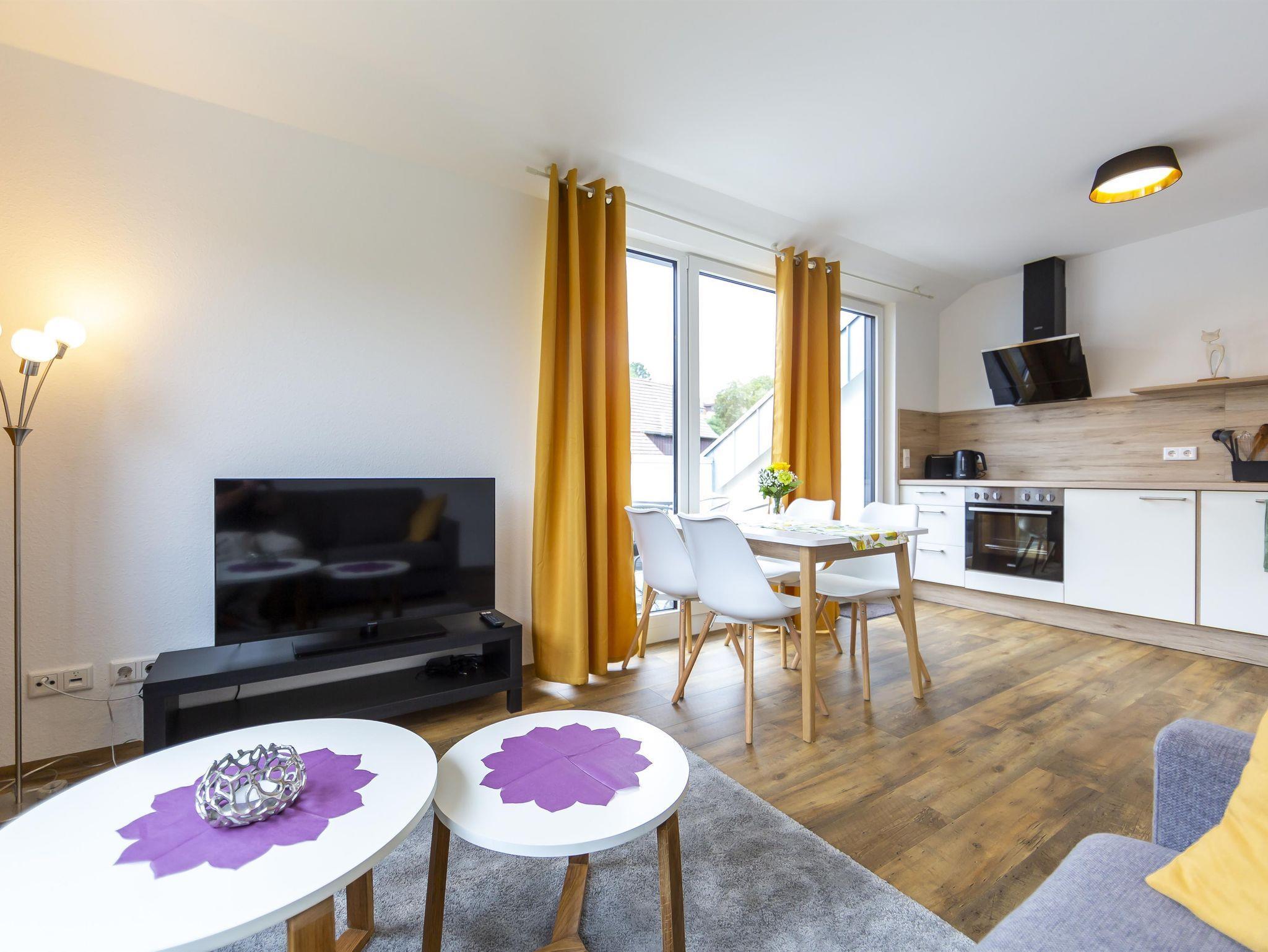 Willkommen in der gemütlichen 38 m² Unterkunft! Genießen Sie die Loggia, Dachschrägen verleihen Charme. 1 x Boxspringbett (2 Personen) & komfortables Schlafsofa (2 Personen). Badezimmer, gut ausgestattete Küche, Essbereich, Wohnzimmer mit 43-Zoll TV. Herd, Spülmaschine, Kaffeemaschine (Pads & Filter), Wasserkocher, Toaster, Backofen und Geschirr für 6 Personen. Aufzug für Bequemlichkeit.
