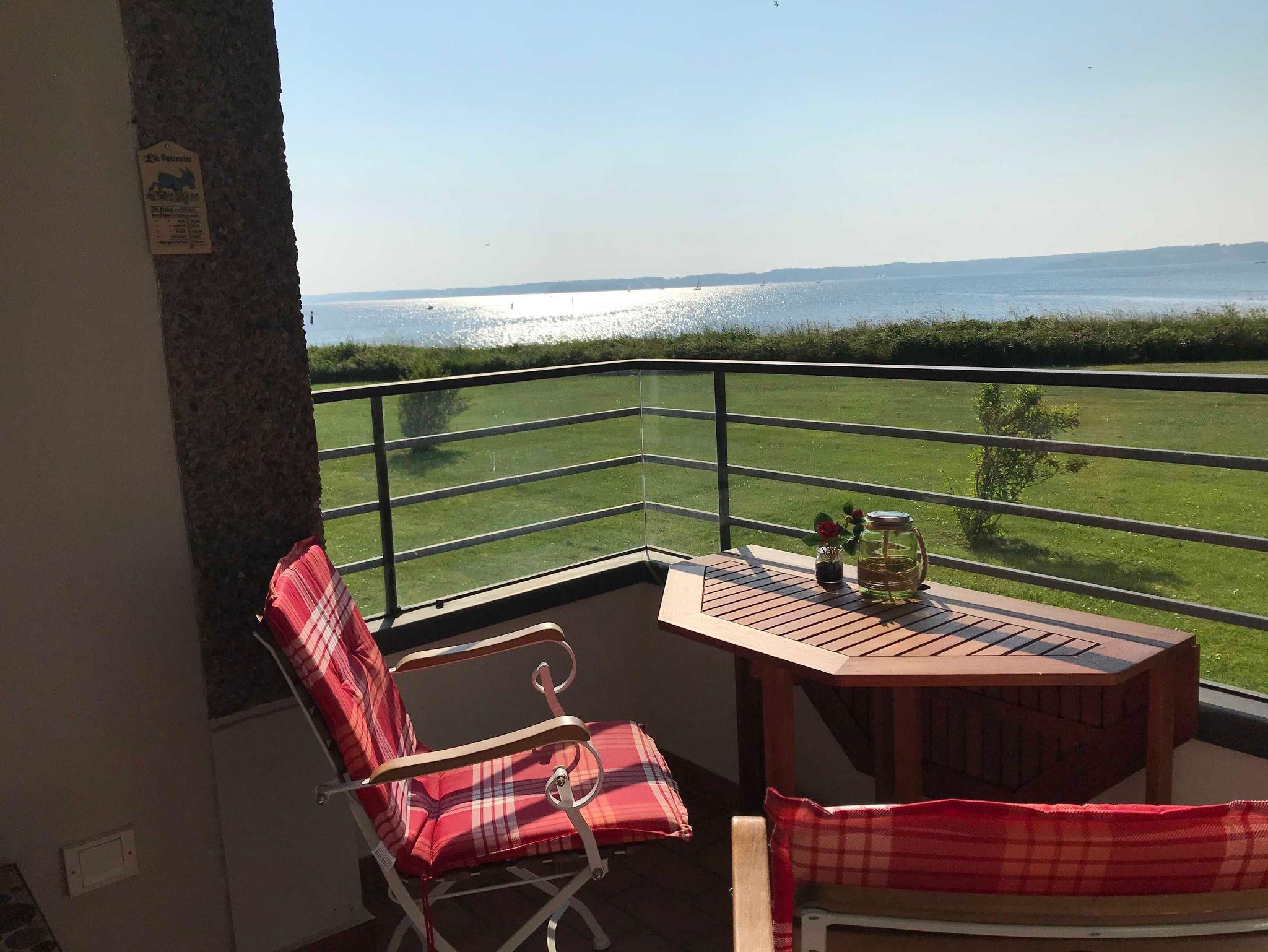 Die Ferienwohnung Wetterfrosch in Glücksburg bietet traumhaften Ostseeblick mit zwei Balkonen und viel Platz zum Entspannen.