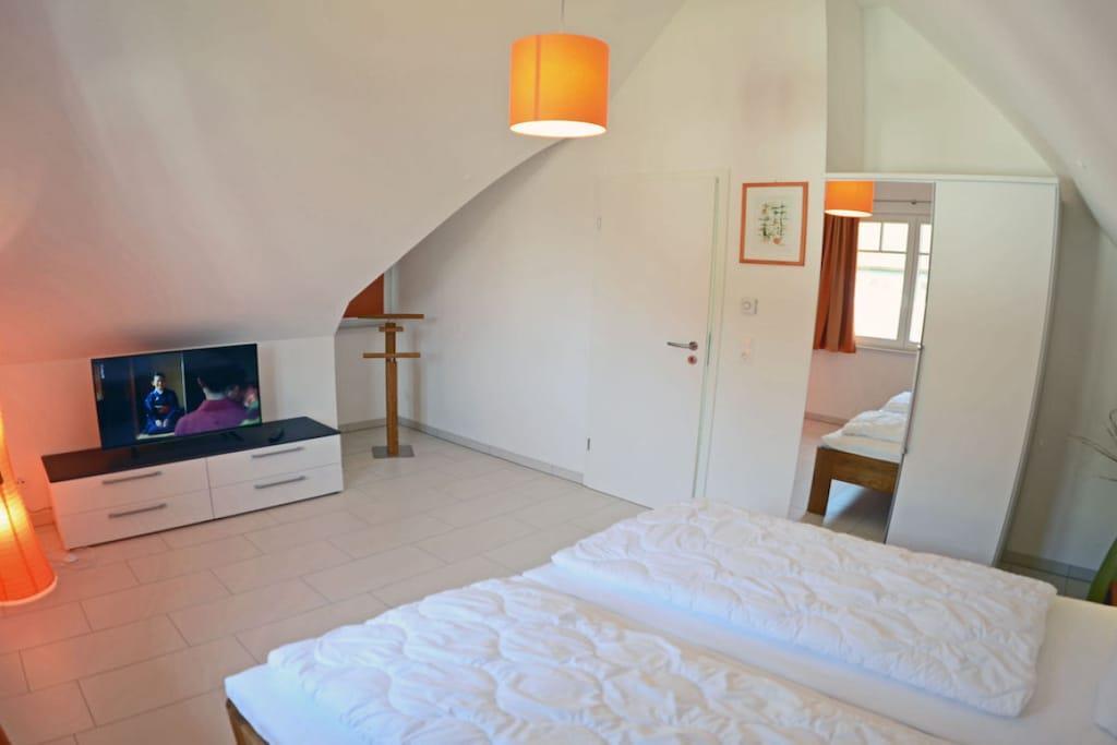 Erholungsort Glowe, über 2 Etagen, ruhige und sonnige Lage am Waldrand, ca. 450 m zum Sandstrand (Ostsee), ca. 800 m zum Bodden Erdgeschoss: großzügiger Wohn- Essbereich mit Fußbodenheizung und Kamin, gemütliche vollwertige Ausziehcouch (140x200), TV/ Sat (Flatscreen) mit USB, Blu-ray Player, Radio/CD, komplett ausgestattete Einbauküche mit Frühstücksterrasse, 4- Plattenherd (Ceranfeld), Backofen, Kühlschrank mit kleinem Gefrierfach, Geschirrspüler und diversen Elektrogeräten, Saunabereich mit bodenebener Dusche und WC, Wirtschaftsraum mit Waschmaschine, Obergeschoss: 1. Schlafzimmer mit komfortablen Doppelbett, Kleiderschrank und TV (Flatscreen), 2. Schlafzimmer mit 2 Einzelbetten (je 200x90) und Kleiderschrank, die Schlafzimmer sind teilweise mit Mückenschutz ausgestattet, hochwertiges Bad mit Badewanne, Dusche und WC, Terrasse mit 6 Gartenstühlen, 2 Liegestühle, Strandkorb und Sonnenschirm, Grill vorhanden Ein perfekter Urlaubstraum im Reethaus Am Dünenwald” Erstvermietung März 2017, Reetdachgedecktes Haus, Grundstück ca. 651 qm, Internet (WLAN) vorhanden, Nichtraucher, Fußbodenheizung im gesamten Haus, Wirtschaftsraum mit Waschmaschine ohne Gebühr, Gartenhaus zum Unterstellen von Fahrrädern, Liegewiese, 2 PKW- Stellplätze am Haus, Einkaufsmöglichkeiten, Kinderspielplatz, Bäcker und Restaurant in unmittelbarer Nähe, optimale Rad- und Wandermöglichkeiten, Haustiere nicht erwünscht