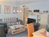Das Wohnzimmer, ausgestattet mit Parkettboden, verfügt über eine gemütliche Schlafcouch für zwei Personen, einen Flachbild-TV, ein Radio, einen DVD-Player und einen Essbereich für vier Personen. Die offene Küche lässt keine Wünsche offen und bietet ein Ceranfeld, Backofen, Kühlschrank, Spülmaschine, Toaster, Wasserkocher und eine Kaffeemaschine. Starten Sie Ihren Urlaubstag mit einem ausgiebigen Frühstück am Essbereich in der offenen Küche oder genießen Sie das Rauschen des Meeres auf dem Balkon.