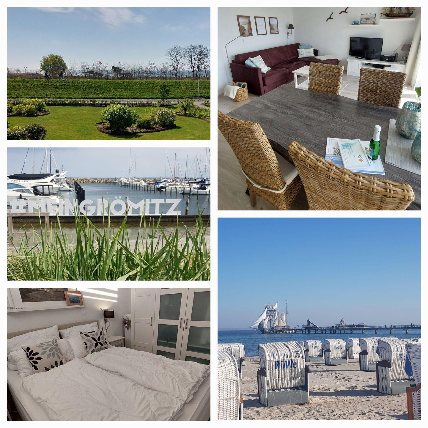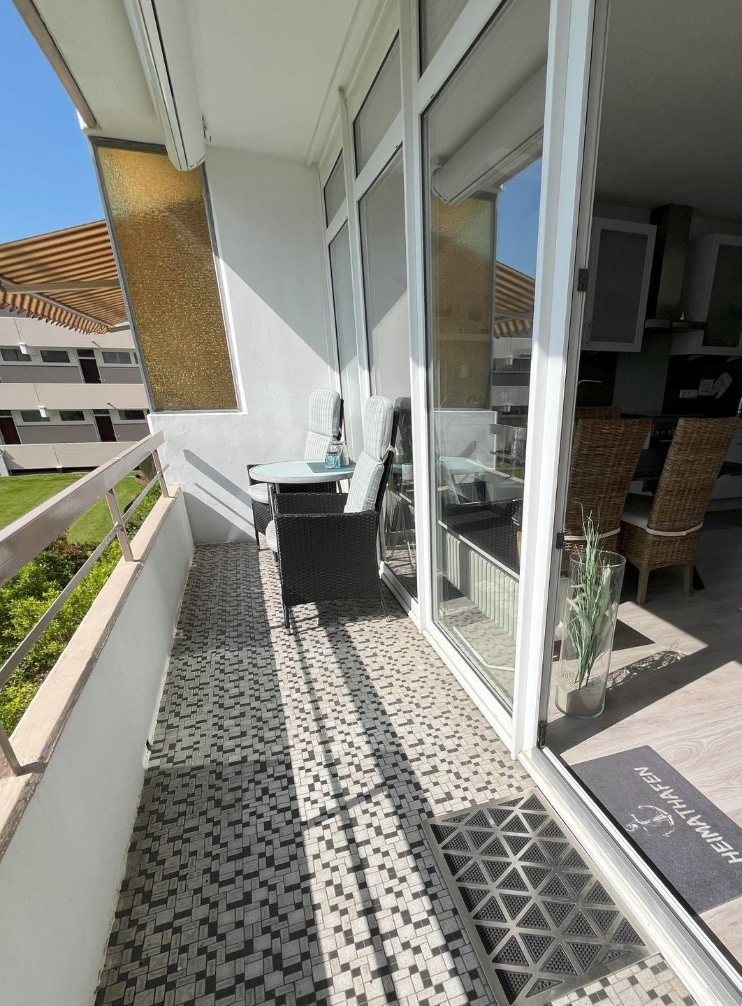 Modernes Apartment mit Balkon nahe Strandpromenade in Grömitz, ideal für erholsamen Urlaub mit WLAN und Parkplatz.