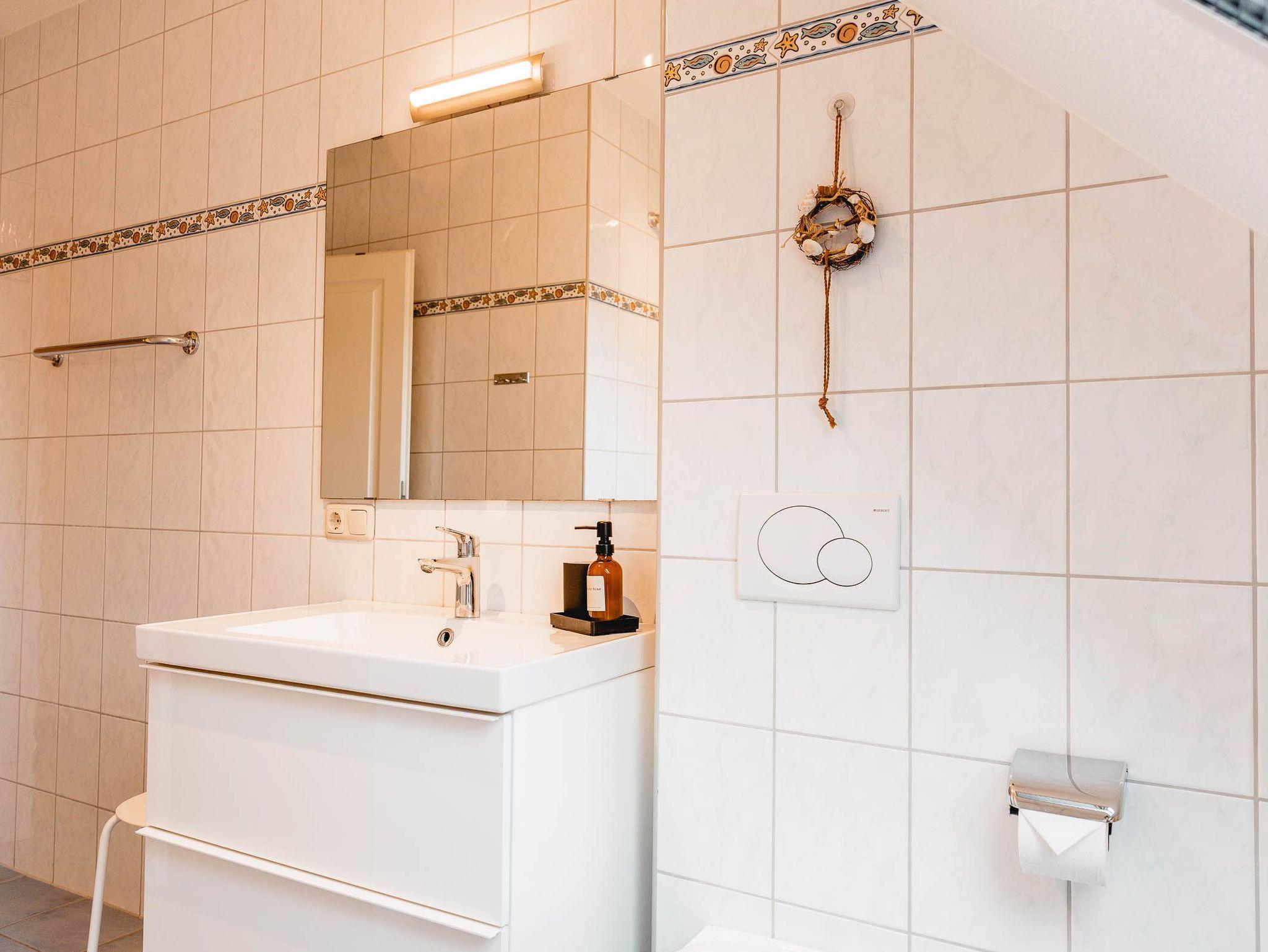 Die Wohnung Wörpe befindet sich im OG unseres Haupthauses und bietet auf 80 qm Platz für bis zu sechs Personen. Aufgeteilt ist die Wohnung in zwei Schlafzimmer (1 SZ mit Doppelbett und 1 SZ mit zwei Einzelbetten, die sich jeweils zu einem vollständigen Doppelbett ausziehen lassen), einem großen Wohn/Essbereich mit komplett ausgestatteter Küchenzeile, einem Bad mit Tageslicht und einem Abstellraum.