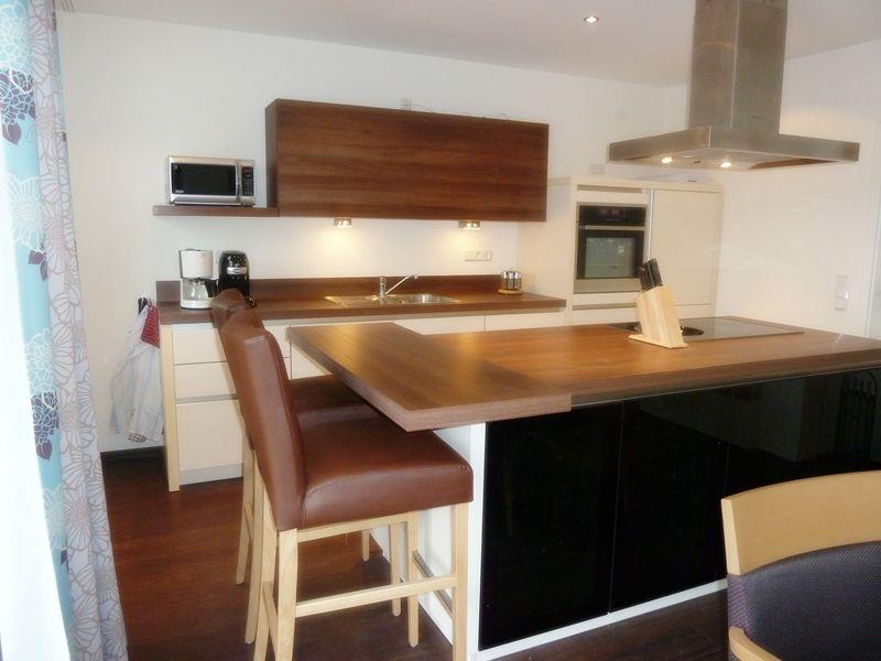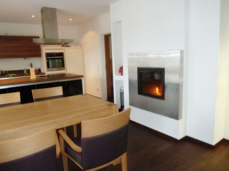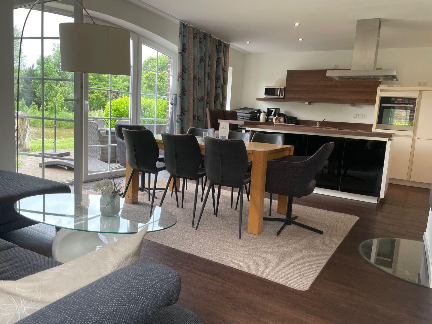 Die hochwertig ausgestattete Küche (Ceranfeld, Kühlschrank, Gefrierschrank, Wasserkocher, Kaffeemaschine, Toaster, Eierkocher, Mixer) mit Kochinsel und separater Wokmulde lädt bei traumhaftem Blick auf die Gracht zum gemeinsamen Kochen und Verweilen ein. Der Kaminofen im Wohn- Essbereich trägt zusätzlich zur Gemütlichkeit bei.