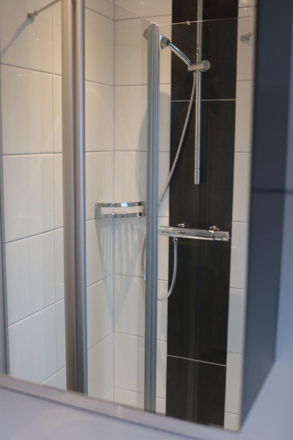Es gibt ein modernes Tageslichtbad mit bodentiefer Dusche und Fön, auch eine Waschmaschine ist hier vorhanden.