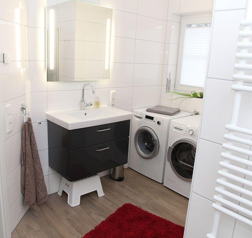 Ein Kamin sorgt für wohlige Wärme im offenen Wohn-Essbereich. Im großen Badezimmer im Erdgeschoss befindet sich eine ebenerdige Dusche und ein großer Spiegelschrank mit ausreichend Ablagefläche, hier befinden sich auch die Waschmaschine und der Trockner. Ein Schlafzimmer befindet sich im EG, zwei weitere Schlafzimmer und ein Dusch- Bad befinden sich im OG.