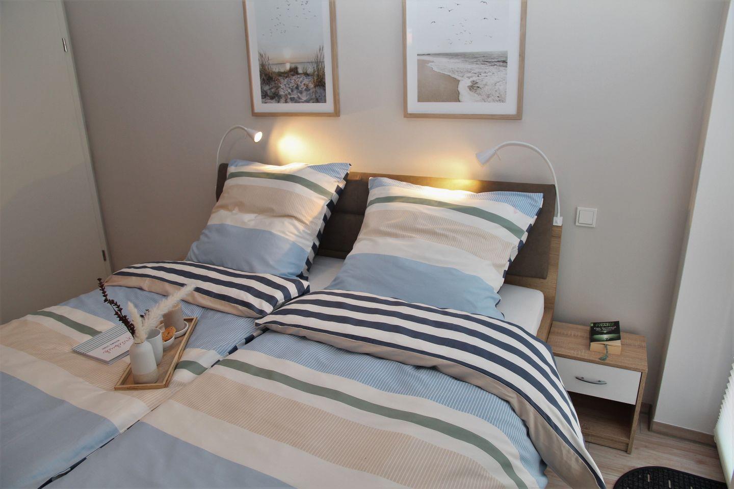 Diese neue Ferienwohnung mit ihrem großzügigen Wohn-Essbereich, sowie den beiden sonnigen Terrassen und dem Garten lädt Sie, liebe Gäste, zum gemütlichen Beisammensein und „Schnacken“ ein.