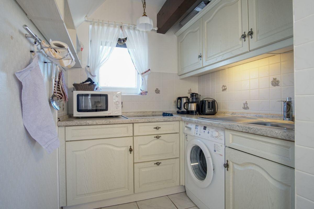 Die Küche ist voll ausgestattet und bietet alles, was das Urlauberherz begehrt. Das Badezimmer wurde erst vor wenigen Jahren modernisiert und verfügt u. a. über eine Dusche.