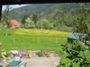Liegewiese mit Liegen , Terrasse, PKW-Abstellplatz,
