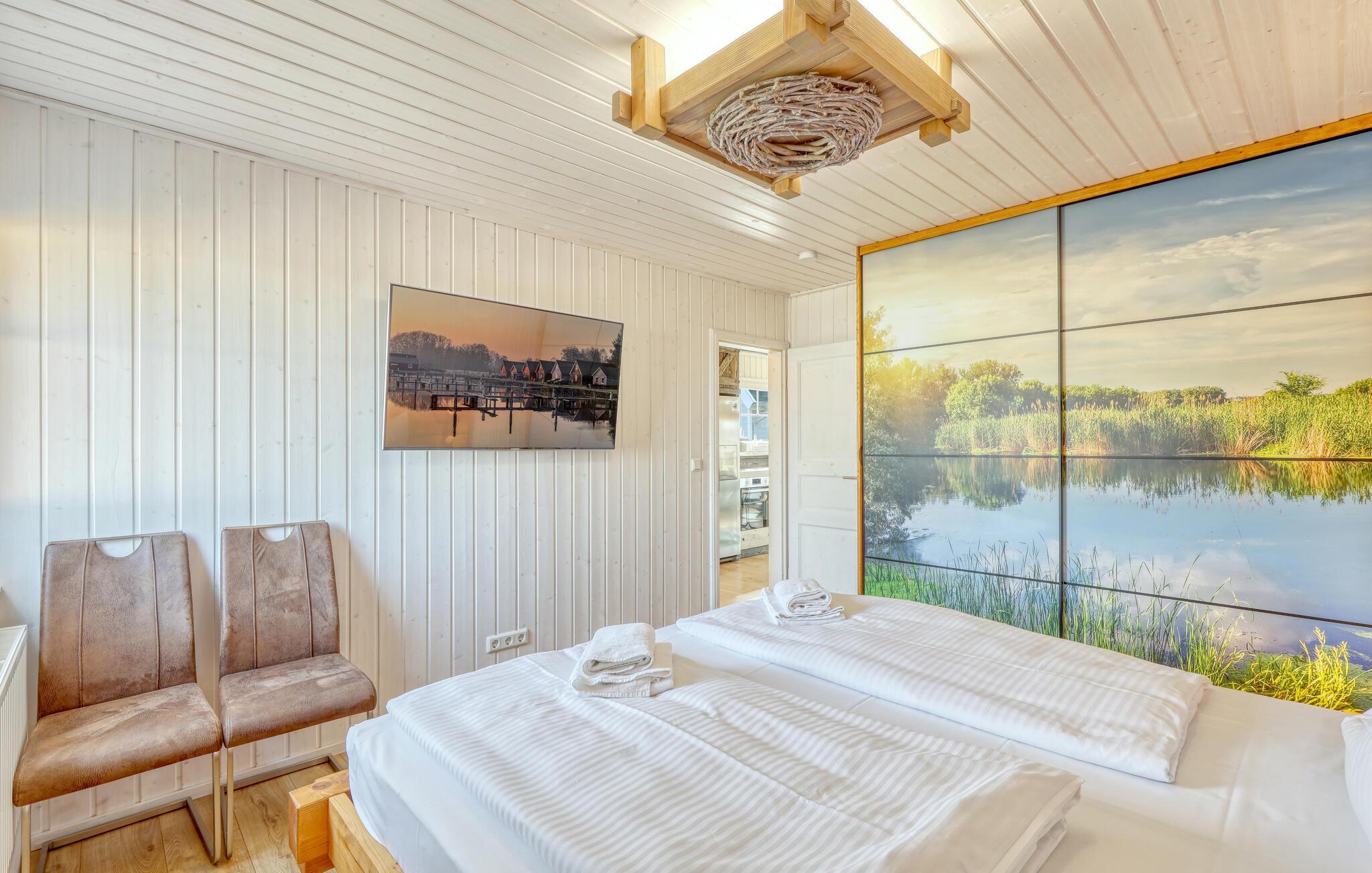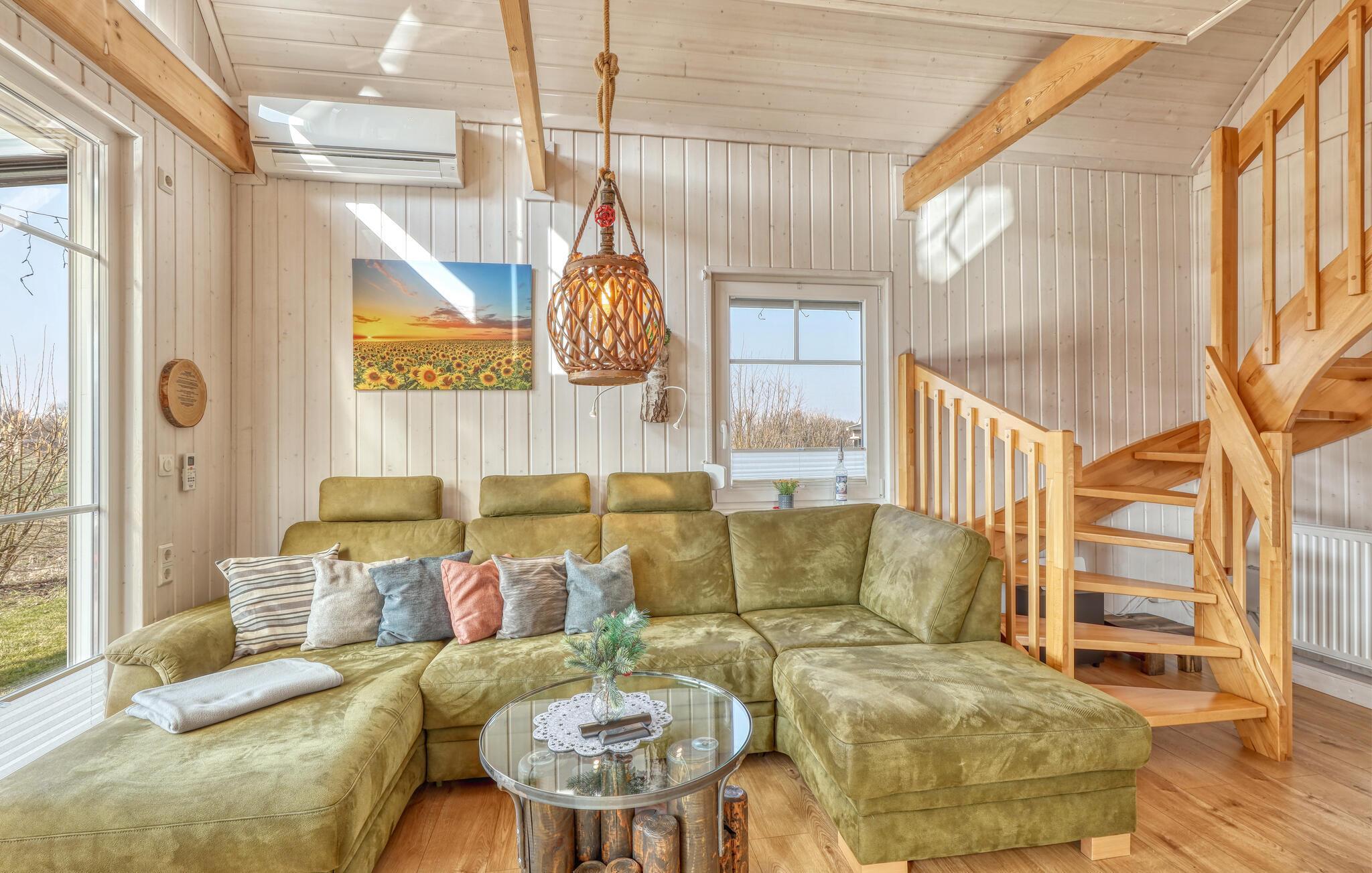 Im grünen Norden Brandenburgs, zwischen Waser und Wiese, liegt das Hafendorf Zerpenschleuse. Dieses schöne Haus im skandinavischen Stil liegt nur einen kurzen Spaziergang vom Sportboothafen entfernt, an dem Ihnen sogar ein privater Bootsliegeplatz zur Verfügung steht. Das Ferienhaus bietet ausreichend Platz für 6 Personen. Die liebevoll ausgewählte Einrichtung spiegelt die Umgebung wieder und unterstreicht den natürlichen Charakter.