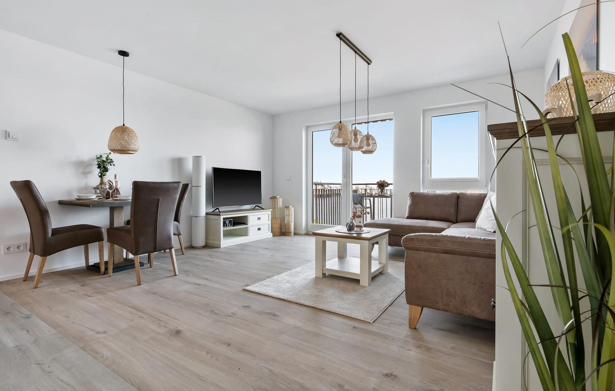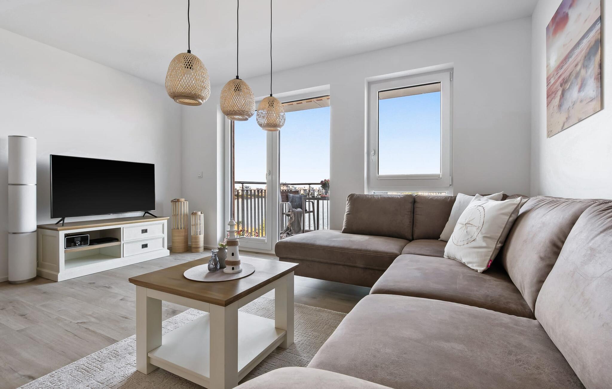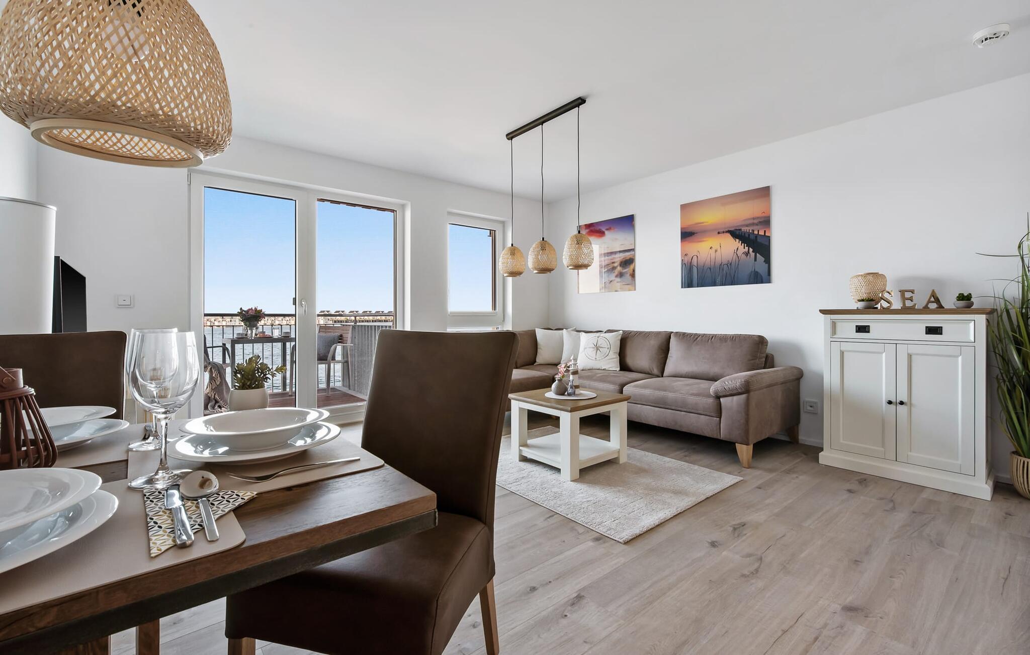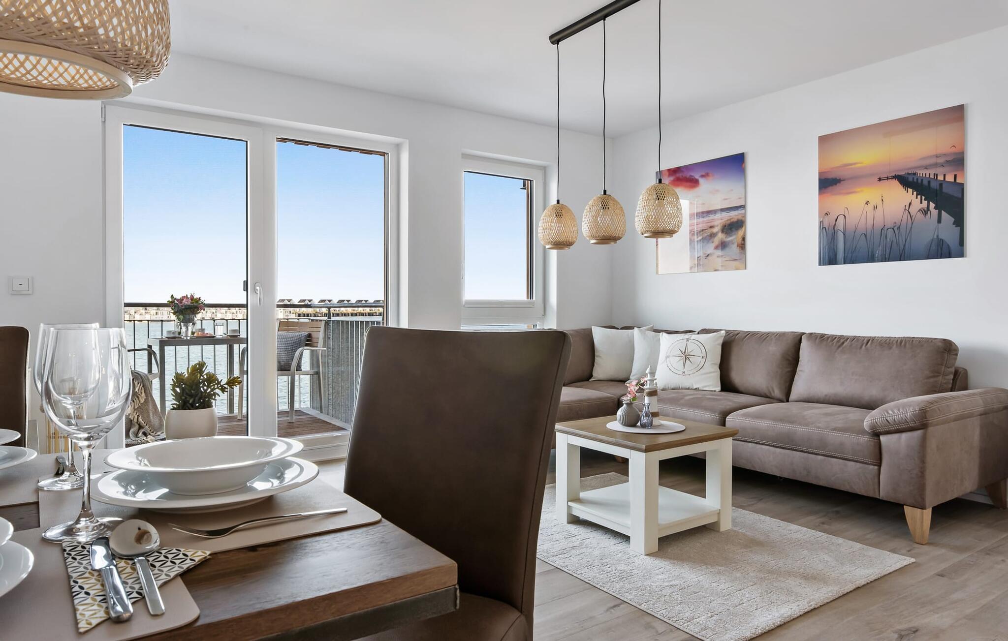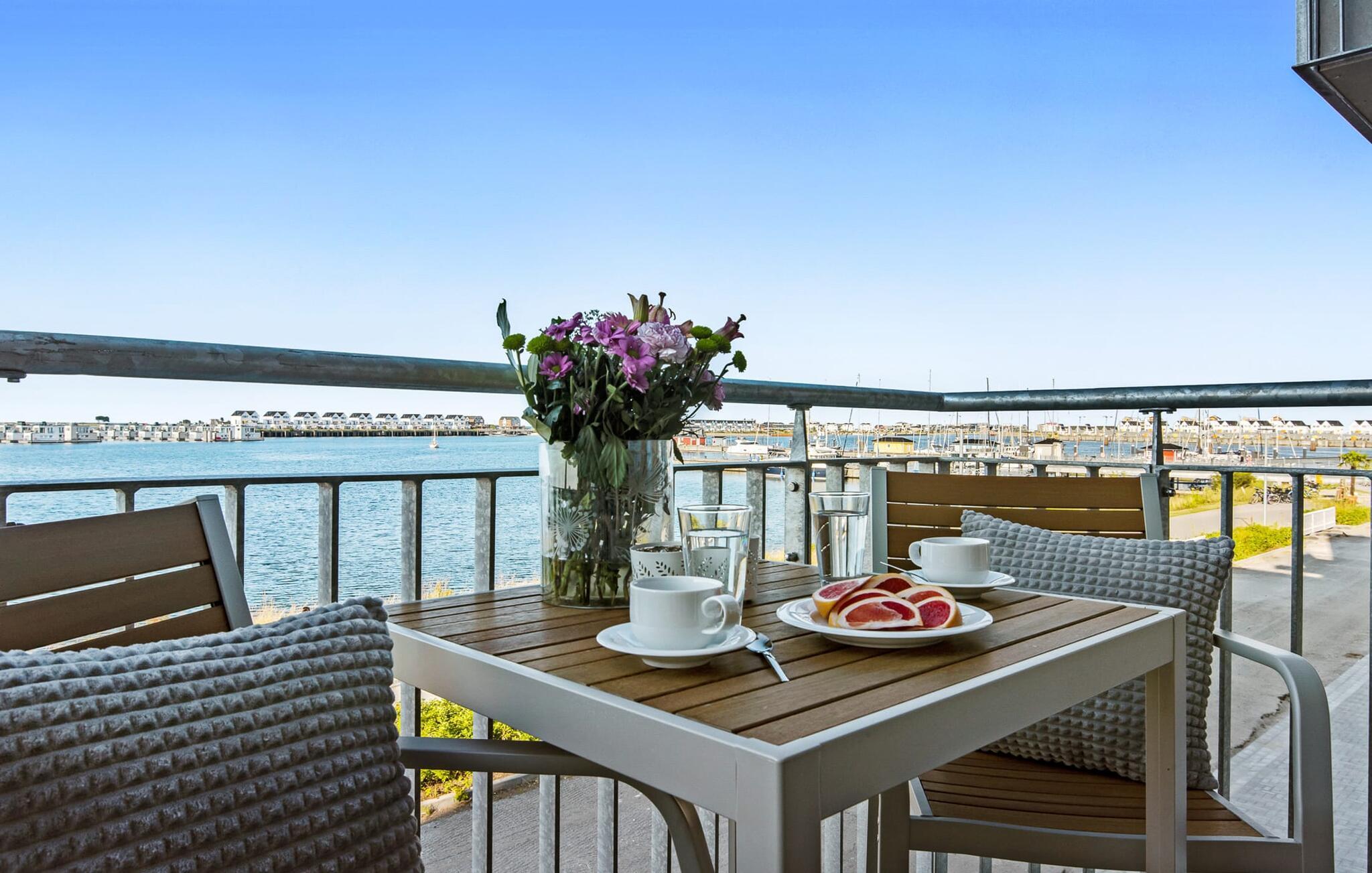 Genießen Sie den atemberaubenden Hafenmeerblick und die exklusive Ausstattung dieser stilvollen Ferienwohnung im OstseeResort Olpenitz.