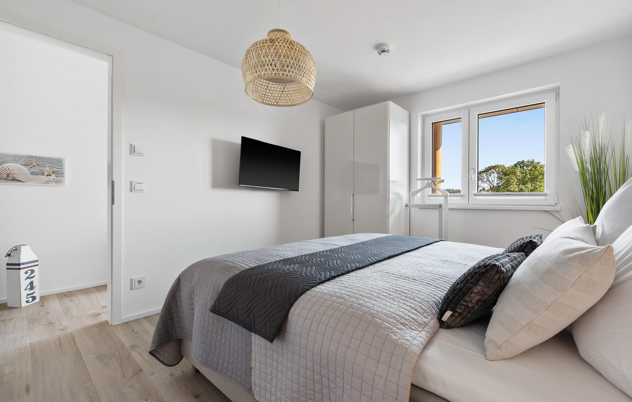 Die Ferienwohnung verfügt über ein Schlafzimmer mit Doppelbett. Hier findet ihr einen weiteren TV.