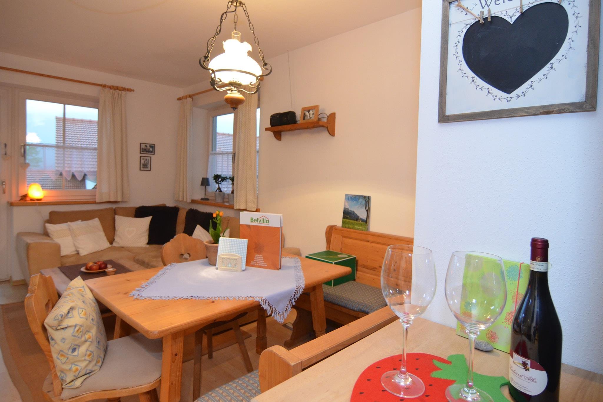Diese haustierfreundliche Wohnung im ersten Stock in Halblech bietet einen gemütlichen Rückzugsort für Paare oder kleine Familien. Sie verfügt über ein Schlafzimmer mit Doppelbett, einen gemütlichen Wohn-/Essbereich mit Holzofen und eine offene Küche mit Cerankochfeld, Backofen, Geschirrspüler und Kühl-Gefrierkombination. Das Badezimmer ist mit einer Dusche ausgestattet, und durchdachte Details wie ein Kinderbett und ein Hochstuhl machen die Wohnung familienfreundlich. Ein privater Balkon und ein 50 m² großer Garten mit Grill und Gartenmöbeln laden zum Entspannen im Freien ein. Gäste profitieren von Zentral- und Fußbodenheizung, Radio und einem privaten Parkplatz. Die schlichte, aber funktionale Raumaufteilung eignet sich ideal für ganzjährige Aufenthalte. Ob Sie auf dem Balkon einen Kaffee trinken oder einen ruhigen Abend am Kaminofen verbringen – diese Wohnung verbindet rustikalen Charme mit modernem Komfort. Besuchen Sie in der Nähe das berühmte Schloss Neuschwanstein, das nur wenige Minuten entfernt ist, oder bewundern Sie die Rokoko-Schönheit der Wieskirche. Naturliebhaber können auf den Wanderwegen des Ammergebirges wandern oder am Bannwaldsee entspannen. Zum Essen empfehlen wir Ihnen den Gasthof Hirsch mit bayerischen Klassikern, das Schlossbräuhaus Schwangau mit herzhaften Gerichten und regionalen Bieren oder Madame Plüsch in Füssen für ein romantisches Abendessen. Mit Waldwegen und Skiliften nur 500 Meter entfernt ist dieses Apartment der perfekte Ausgangspunkt für Ihr Allgäu-Abenteuer.