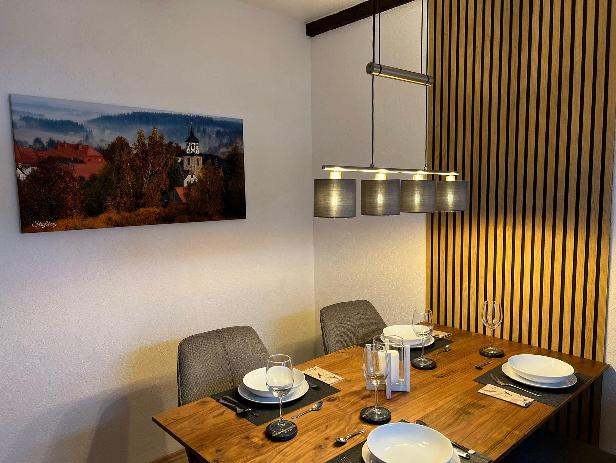 Willkommen in der Ferienwohnung ?Seidenglanz? im Erdgeschoss unseres Ferienhauses Hüttenblick in Straßberg/Harz. Auf großzügigen 60 m² bieten wir Ihnen ein behagliches Zuhause für Ihren Aufenthalt. Ideal für 2 Personen, aber auch geeignet für bis zu 4 Personen dank eines komfortablen Schlafsofas.
