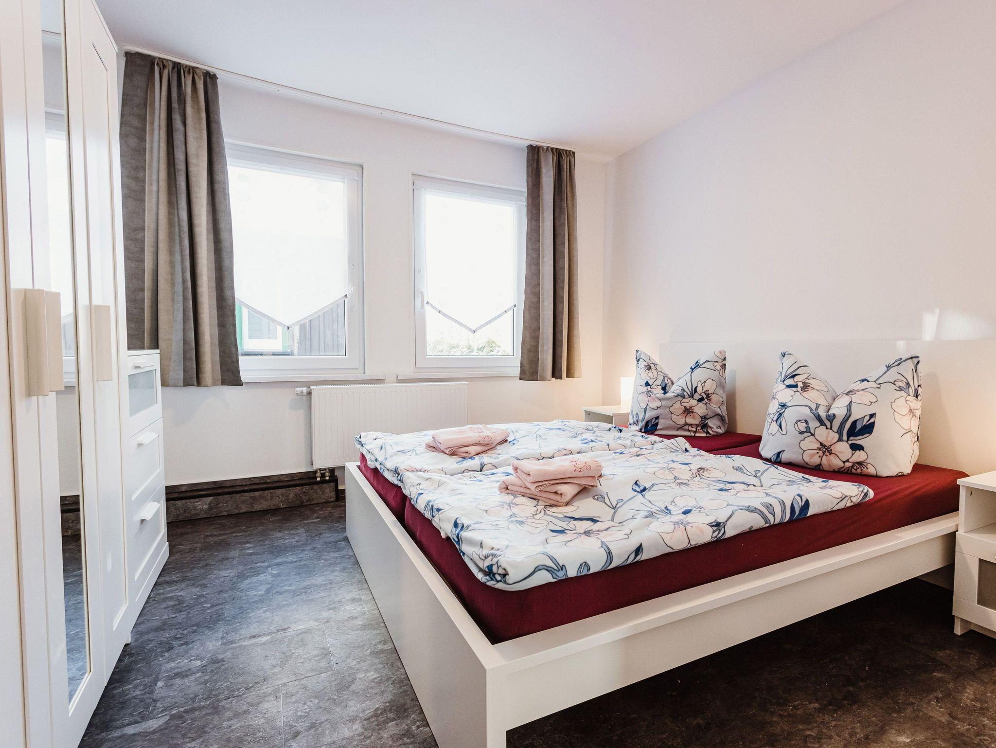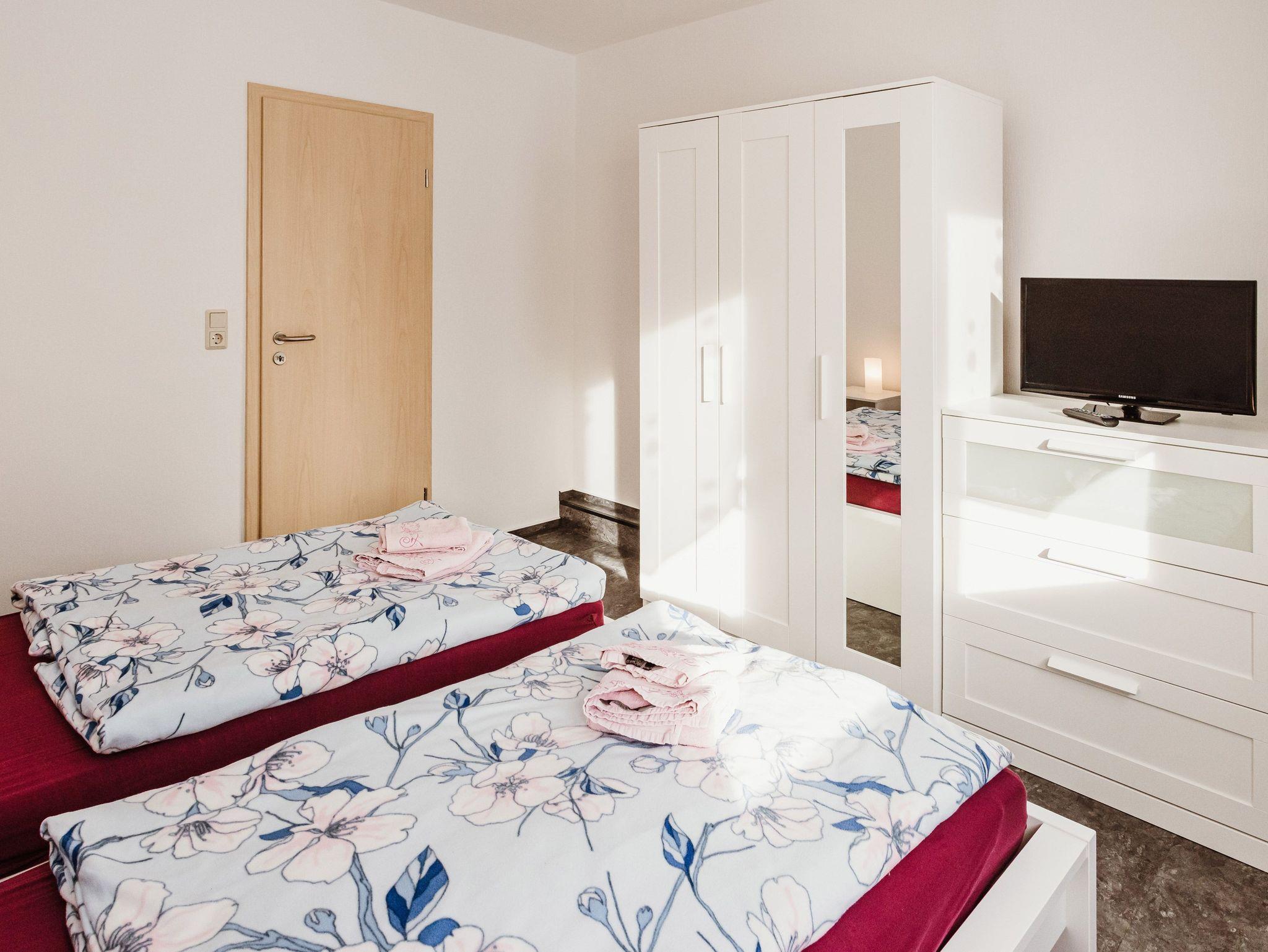 Entdecken Sie Ferienwohnung 2 ab Frühjahr 2024 sogar mit Terrasse, Sitzmöbeln und Grill. Diese geräumige Unterkunft bietet Platz für bis zu 4 Personen und verfügt über ein Schlafzimmer mit Doppelbett und Einzelbett sowie ein weiteres Schlafzimmer mit zwei Einzelbetten. Jedes Schlafzimmer ist zudem mit einem Flachbild-TV ausgestattet.
