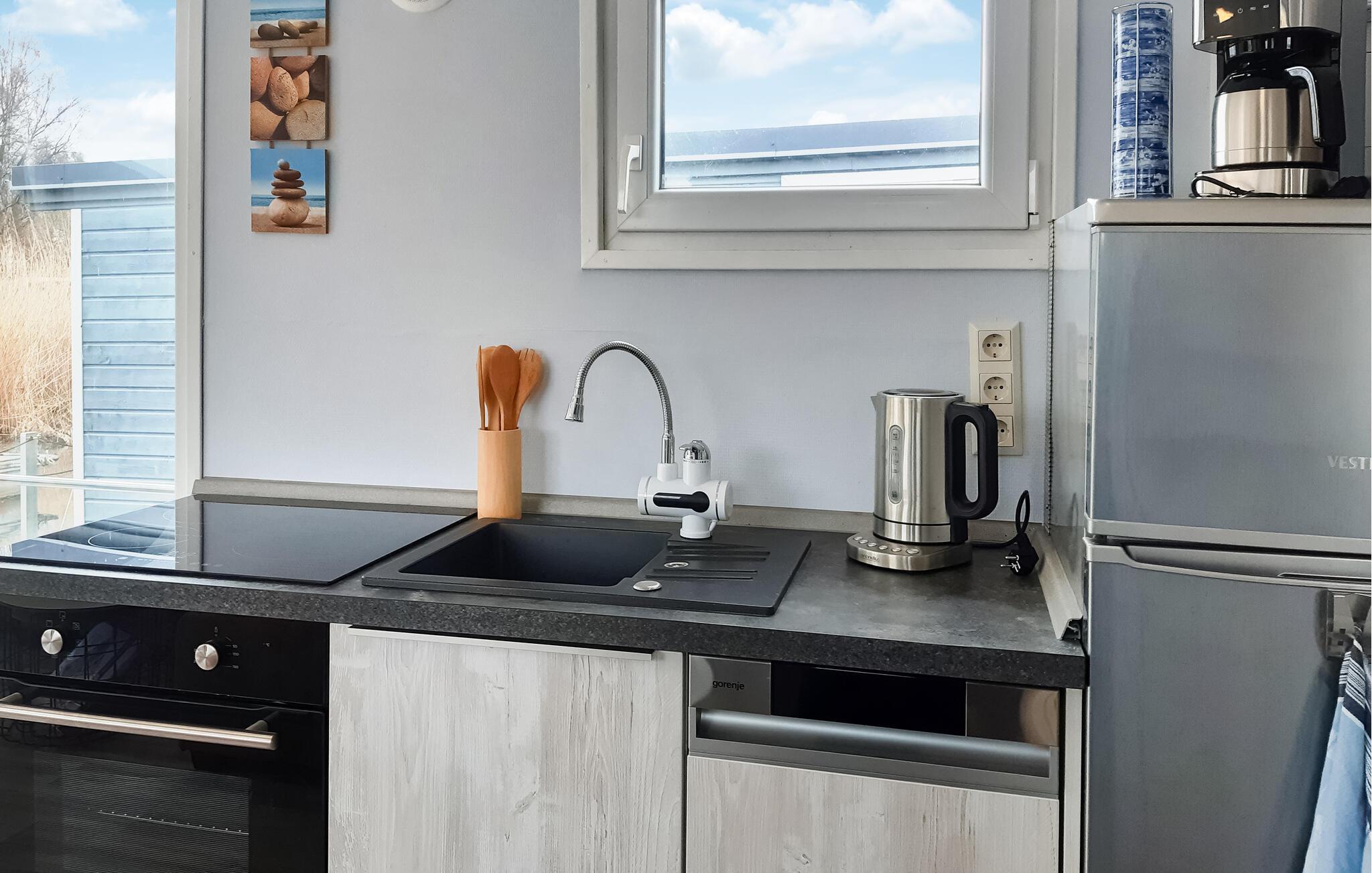Die Küchenzeile verfügt über heißes Wasser