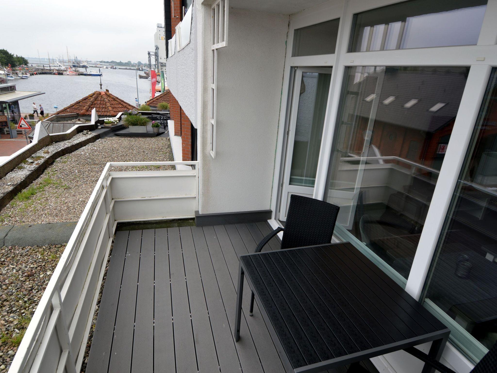 Diese helle Wohnung mit Balkon bietet herrlichen Blick auf den Yachthafen und liegt zentral in Heiligenhafen.