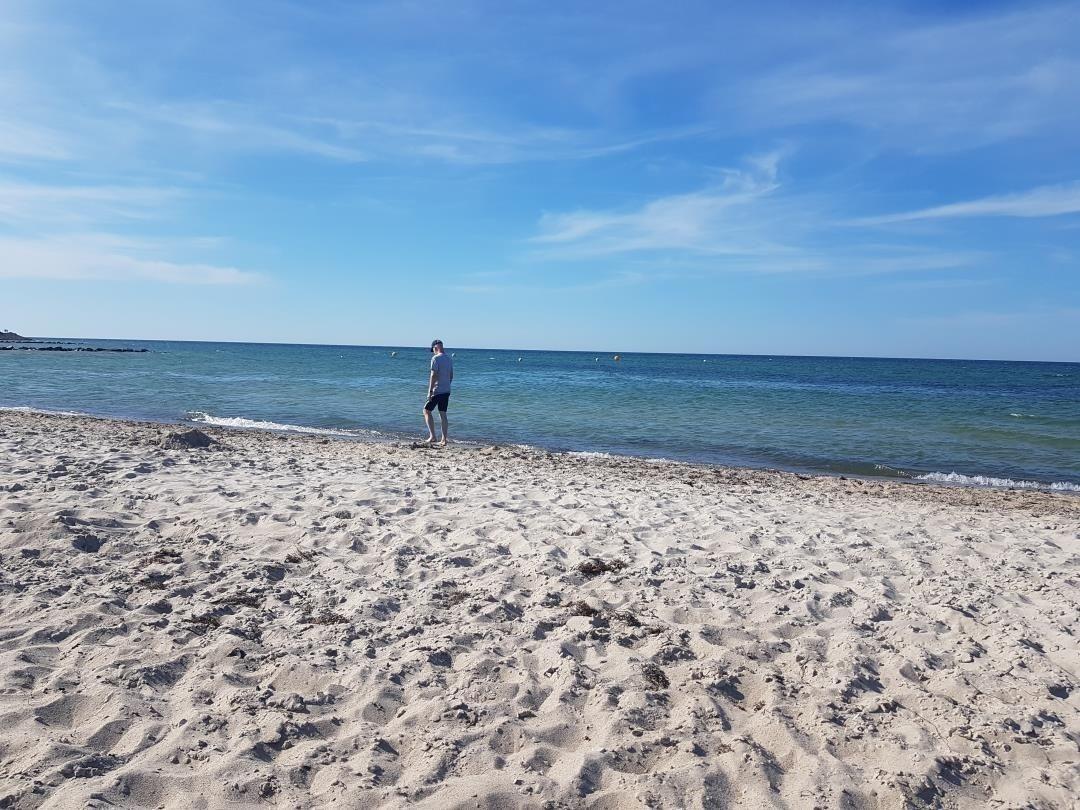 Moderne Ferienwohnung mit Meerblick, Terrasse und voll ausgestatteter Küche in Heiligenhafen, nur wenige Meter vom Badestrand entfernt.