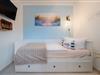 Das zweite Schlafzimmer ist mit einem Kojenbett (0,80m x 2,00m / ausgezogen 1,60m x 2,00m) und einem Fernseher ausgestattet.