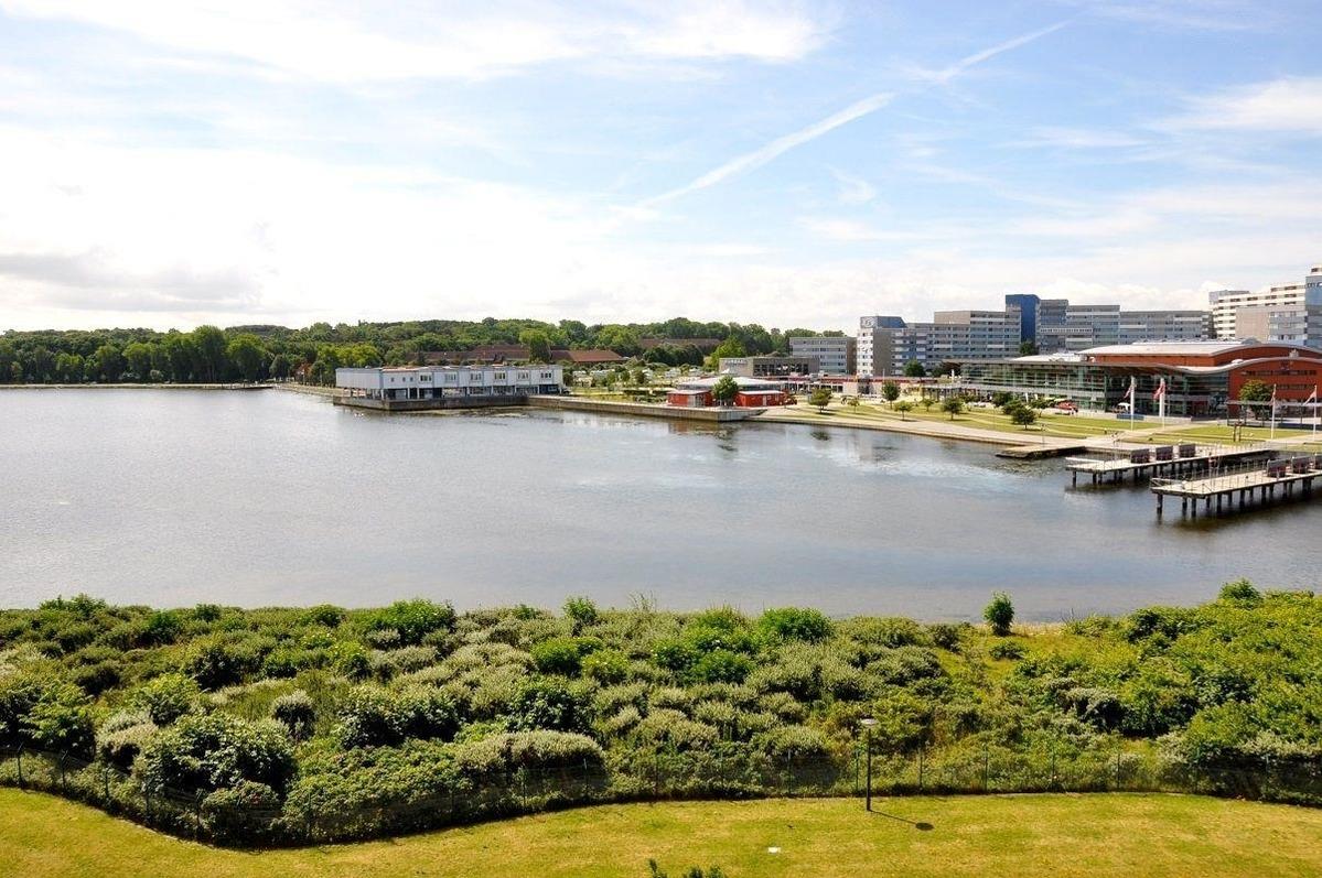 Vom großen Wohn-Esszimmer gelangt man auf den Südbalkon mit tollem Blick zum Binnensee und seitlich zum Hafen.