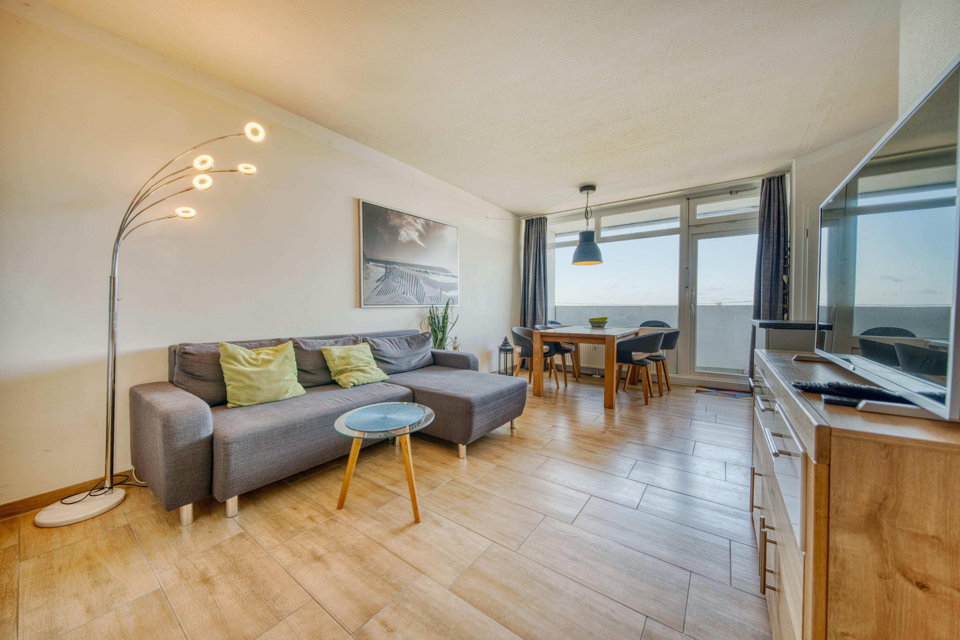 Gemütliche Ferienwohnung im 12. Stock mit Balkon und Ostseeblick nahe Strand in Heiligenhafen.