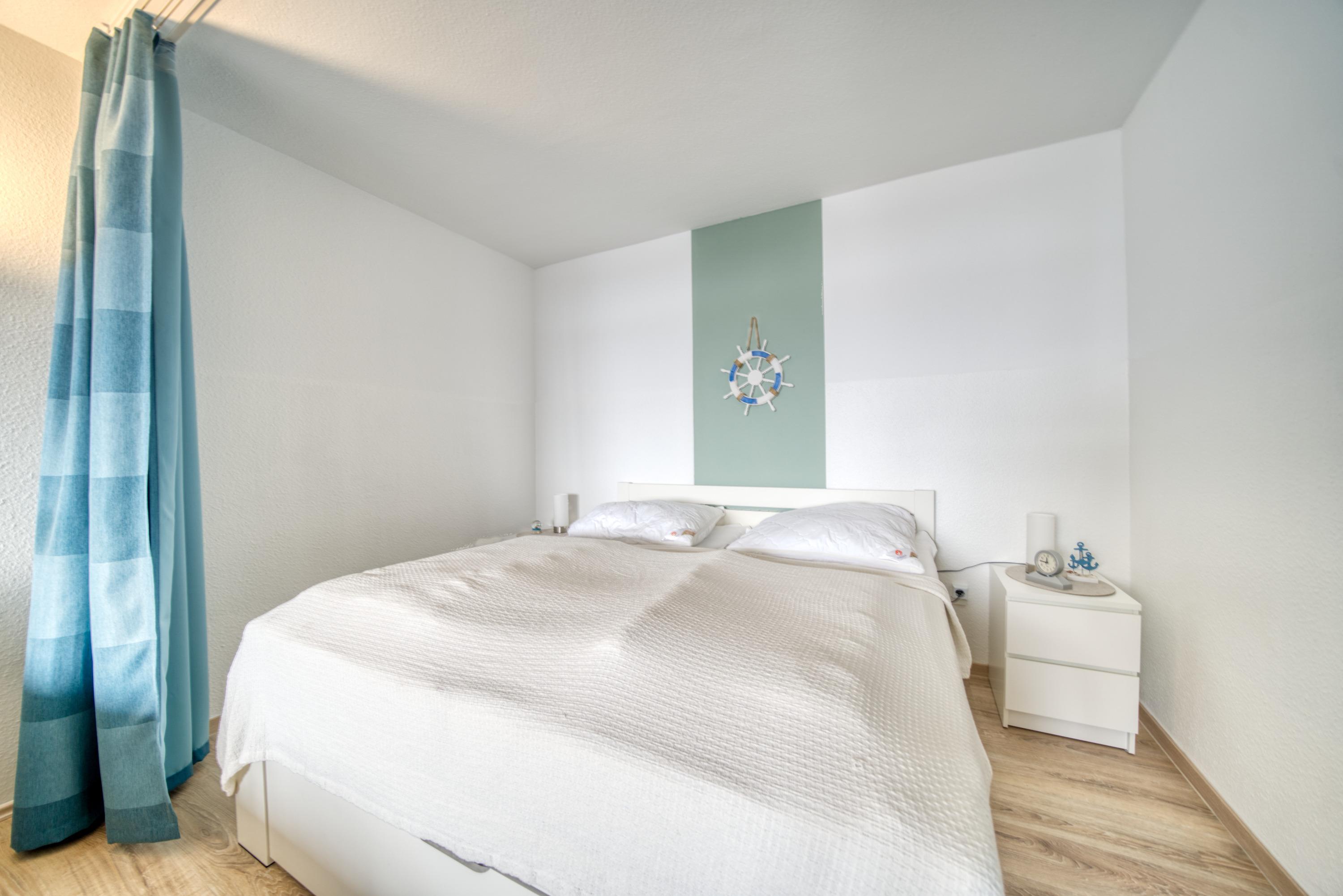 45?m² für bis zu 4 Personen, Südbalkon mit Binnenseeblick, Laminatboden, Smart-TV, WLAN inklusive. Wohnbereich mit Doppelbett (Vorhang für Privatsphäre), separates Kinderzimmer mit Etagenbett. Offene, ausgestattete Küche mit Cerankochfeld, Kühlschrank, Mikrowelle, Kaffeemaschine. Badezimmer mit Duschkabine, Handtuchtrockner, WC. Nichtraucherwohnung, keine Haustiere. Ca. 300?m zum Strand, Fahrstuhl, Fahrradräume und kostenloser Parkplatz vorhanden. Perfekt für Familien oder Paare, die Komfort, Binnenseeblick und kurze Wege zum Strand und Aktiv-Hus schätzen.