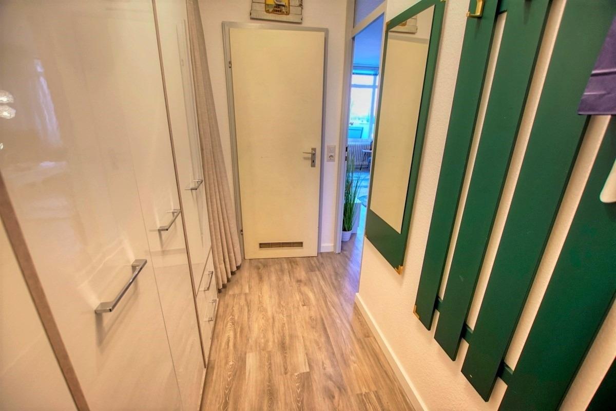 Ca. 45?qm Wohnfläche mit Wohn-Esszimmer (Schlafcouch, Sessel, Flachbild-TV), Schlafbereich mit Doppelbett, Küche mit Herd, Mikrowelle und Kaffeemaschine sowie Bad mit Dusche, WC und Handtuchtrockner. Balkon mit Blick auf den Innenhof. WLAN inklusive. Geeignet für max. 3–4 Personen, Nichtraucher, keine Haustiere. Abschließbare Fahrradräume, Strand ca. 300?m, kostenfreier Parkplatz vorhanden.