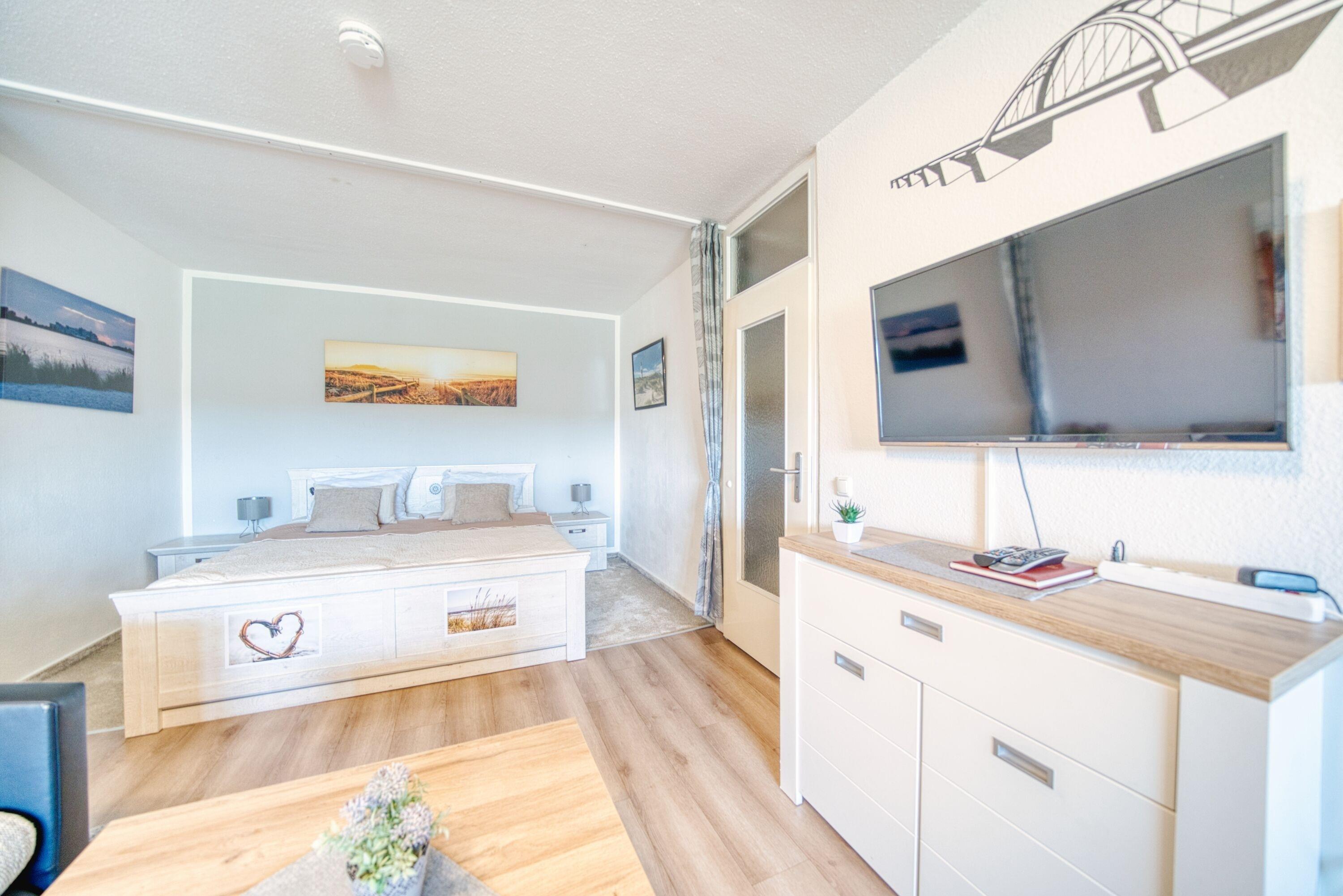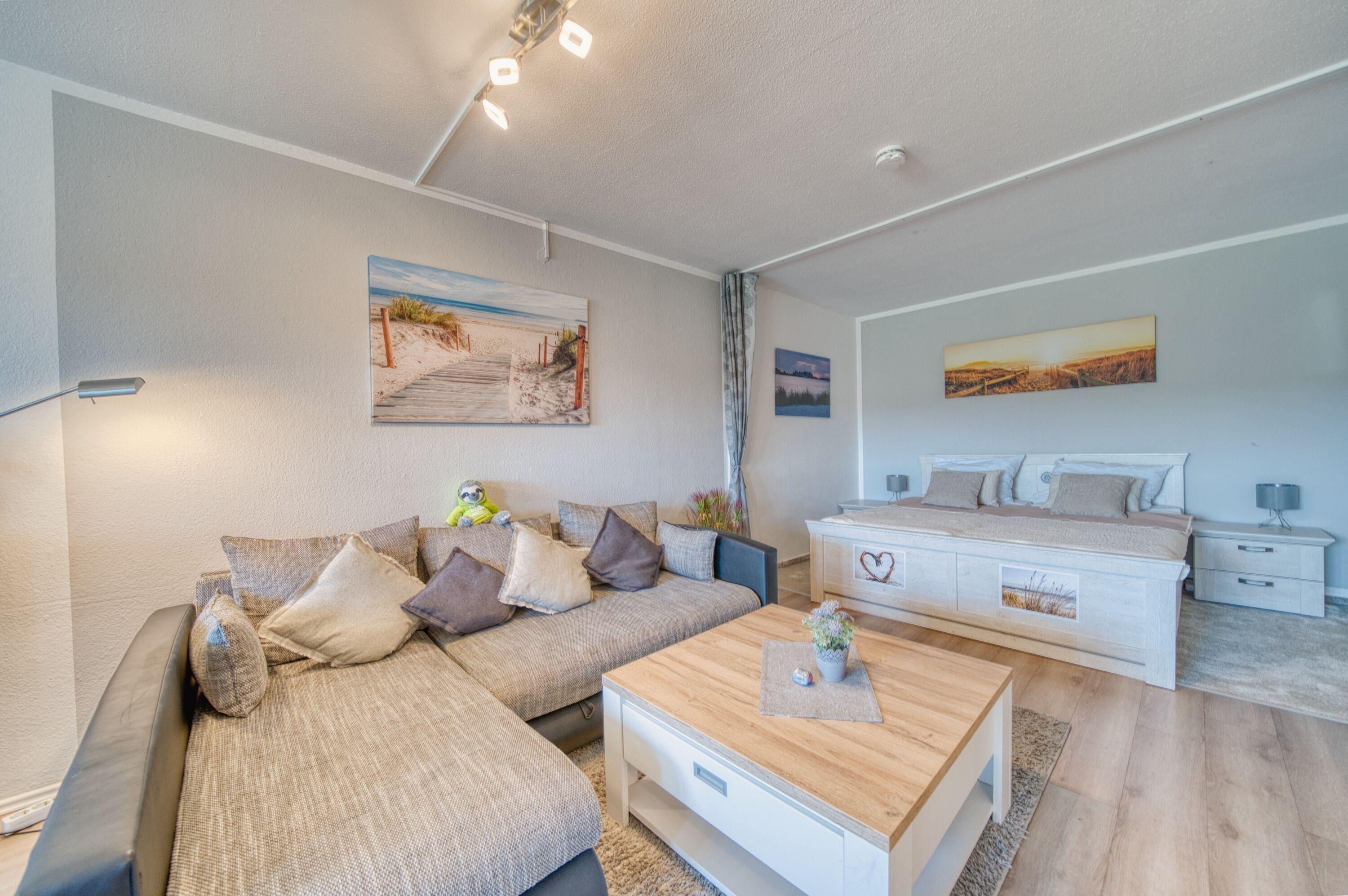 Gemütliche Ferienwohnung in Heiligenhafen mit Blick auf Salzwiesen und Nähe zum Strand.