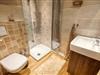 Die hochwertige Küche bietet Induktionsherd, Backofen, Geschirrspüler, Kühlschrank mit Gefrierfach sowie Toaster, Kaffeemaschine und Wasserkocher. Das vergrößerte Bad ist mit niedriger Duschtasse, Duschkabine und WC ausgestattet.