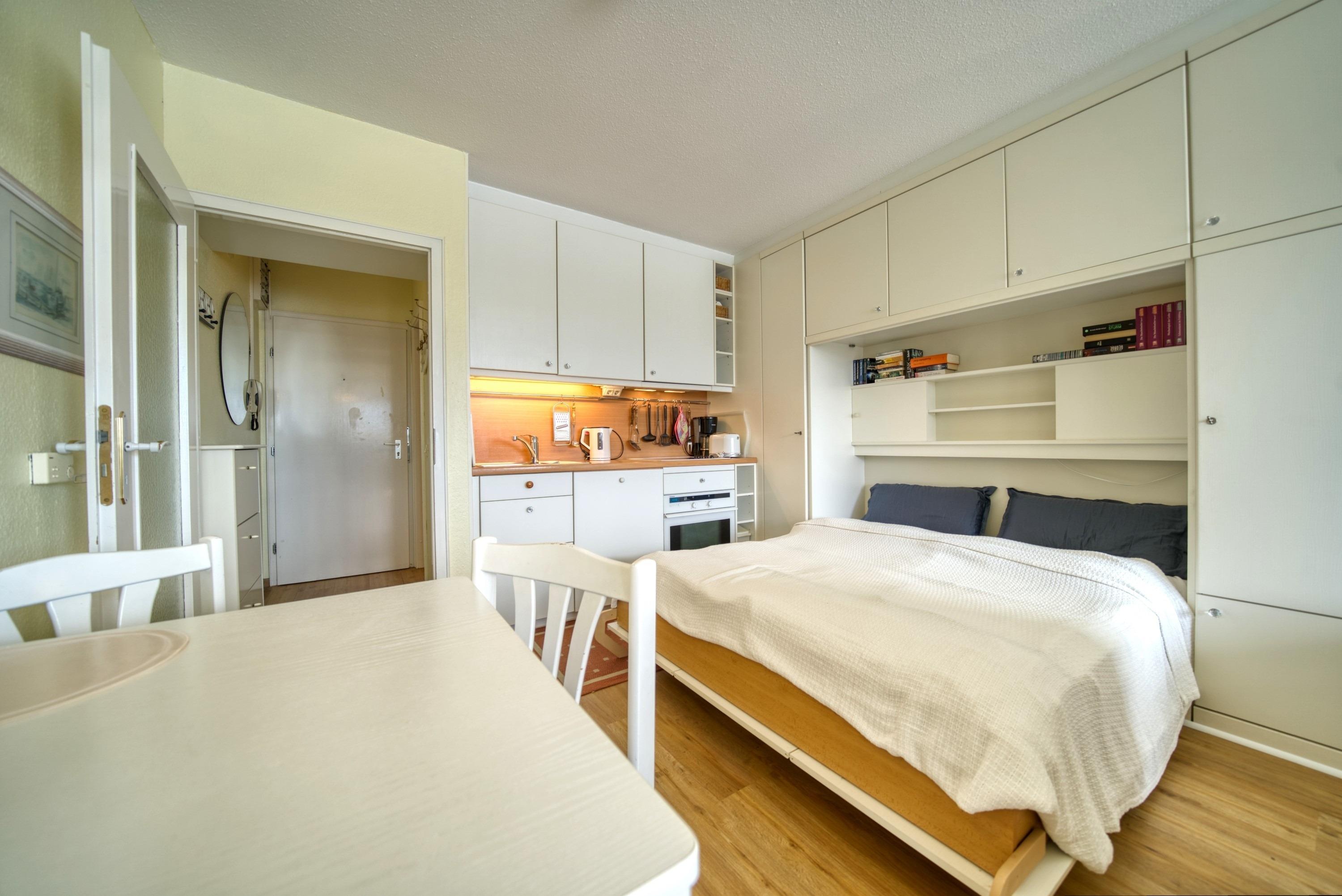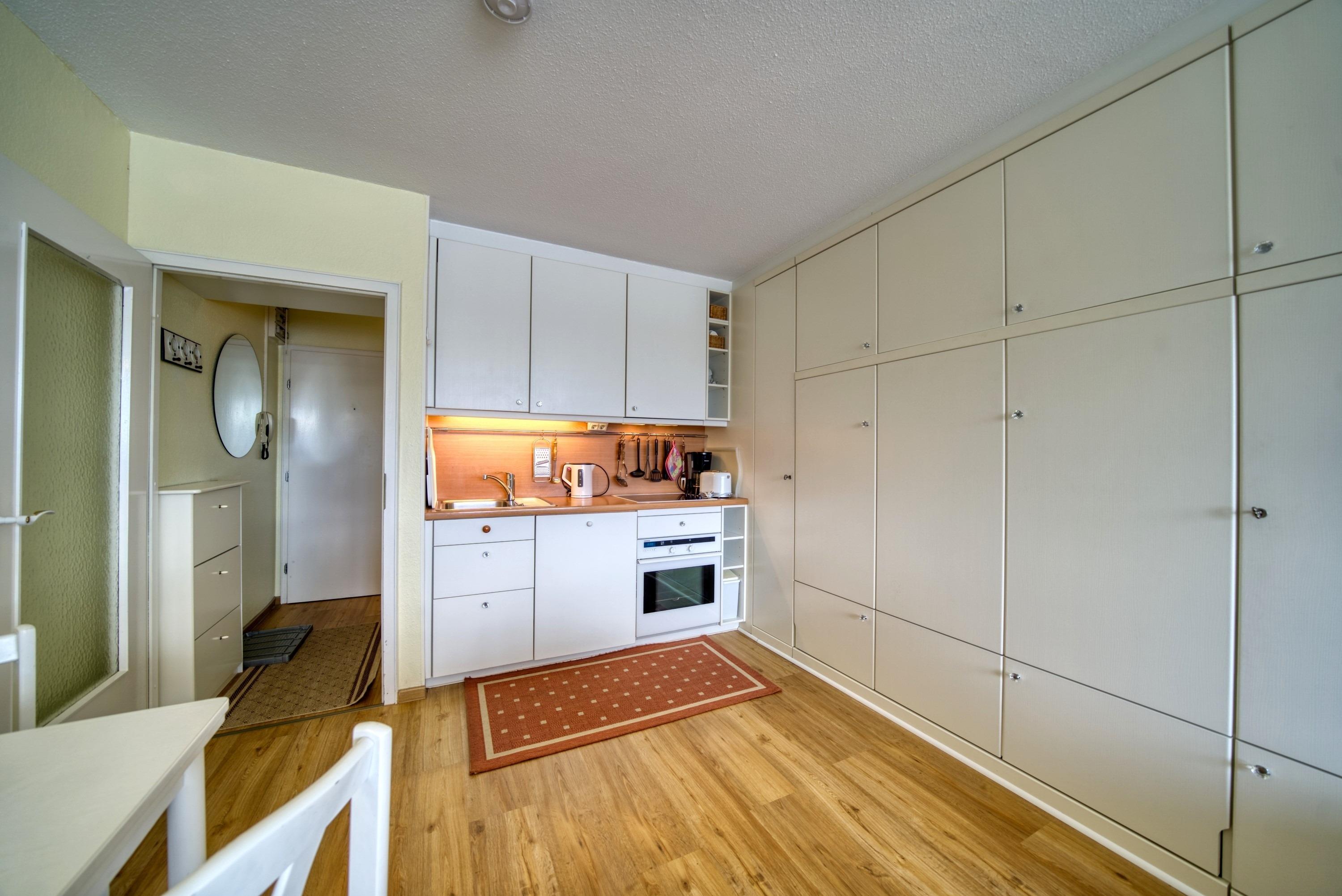 Der Wohn-Schlafraum verfügt über praktische Schrankbetten. Vom Balkon mit Markise genießen Sie den Blick auf die Binnensee. Die gut ausgestattete Pantryküche bietet 4-Plattenherd, Backofen sowie einen Kühlschrank mit Gefrierfach. Ein moderner Laminatboden sorgt für ein angenehmes Wohngefühl.