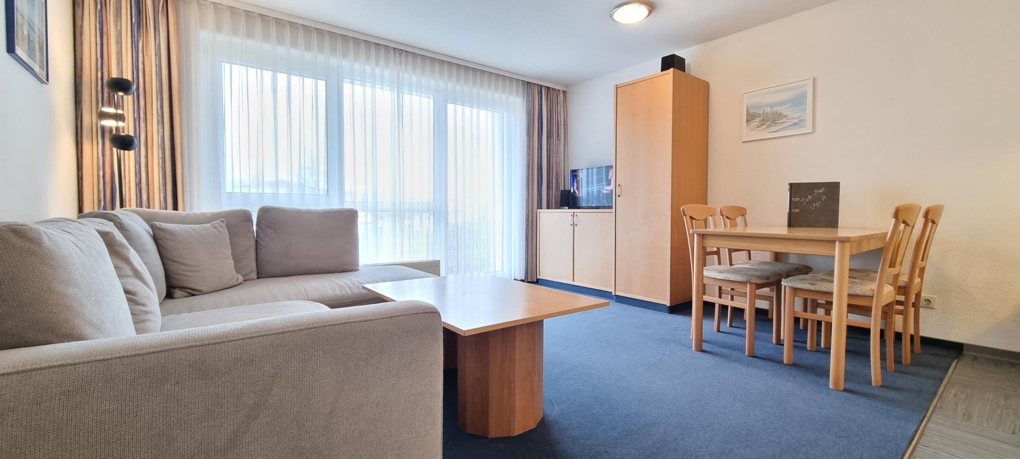 Wohnbereich mit Schlafcouch & TV – ideal für entspannte Abende
