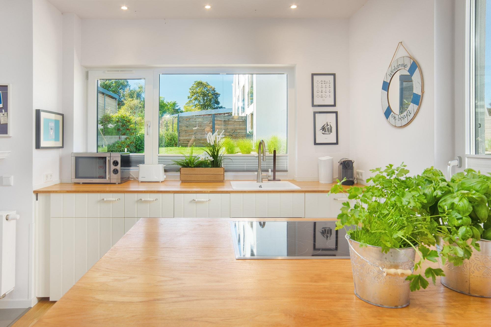 Die helle, modern eingerichtete Ferienwohnung ist ideal für Gäste, die Erholung und Entspannung suchen. Auf rund 60 Quadratmetern im barrierearmen Erdgeschoss finden bis zu zwei Erwachsene und zwei Kinder ausreichend Platz. Das maritime Flair und die geschmackvolle Einrichtung sorgen für eine einladende Atmosphäre. Der offene Wohnbereich mit Laminatboden bietet direkten Zugang zur möblierten Terrasse mit Strandkorb und großzügigem Sitzbereich. Dank bodentiefer Fenster gelangt viel Tageslicht in die Wohnung, während die Ostausrichtung der Terrasse bis zum frühen Nachmittag Sonne garantiert.